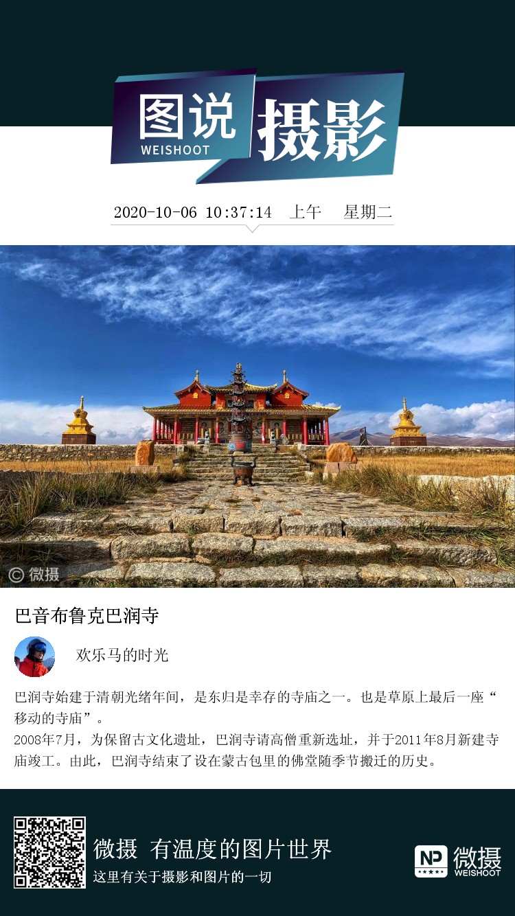 巴润寺始建于清朝光绪年间,是东归是幸存的寺庙之一。也是草原上最后一座“移动的寺庙”。 2008年7月,为保留古文化遗址,巴润寺请高僧重新选址,并于2011年8月新建寺庙竣工。由此,巴润寺结束了设在蒙古包里的佛堂随季节搬迁的历史。