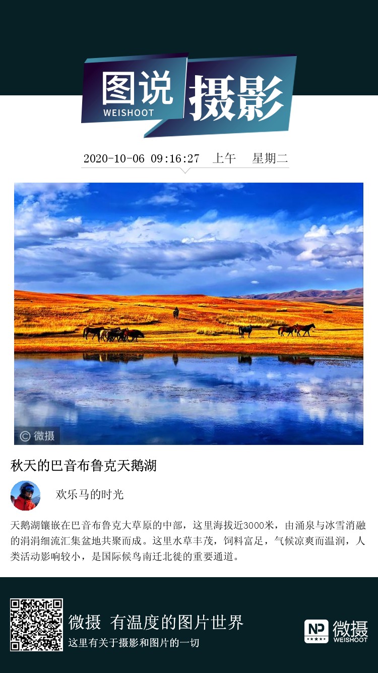 天鹅湖镶嵌在巴音布鲁克大草原的中部,这里海拔近3000米,由涌泉与冰雪消融的涓涓细流汇集盆地共聚而成。这里水草丰茂,饲料富足,气候凉爽而温润,人类活动影响较小,是国际候鸟南迁北徙的重要通道。