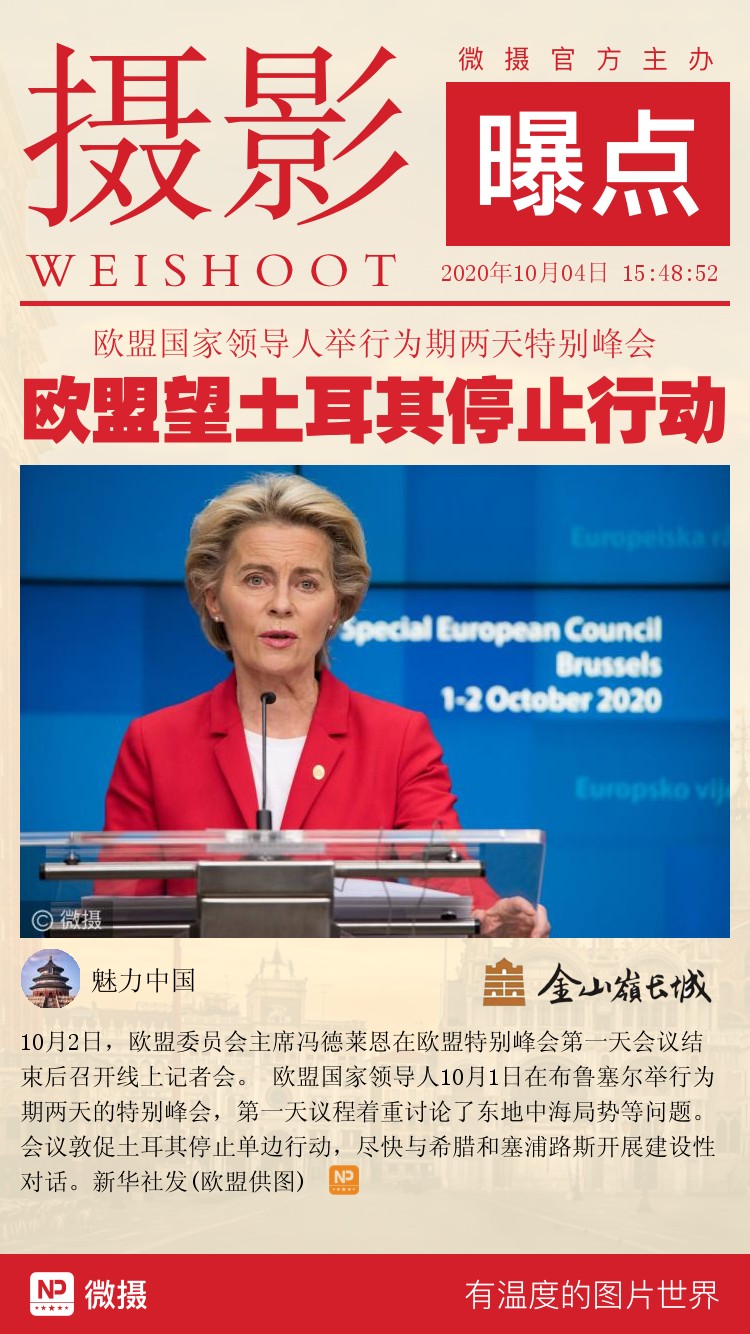 10月2日,欧盟委员会主席冯德莱恩在欧盟特别峰会第一天会议结束后召开线上记者会。 欧盟国家领导人10月1日在布鲁塞尔举行为期两天的特别峰会,第一天议程着重讨论了东地中海局势等问题。会议敦促土耳其停止单边行动,尽快与希腊和塞浦路斯开展建设性对话。新华社发(欧盟供图)