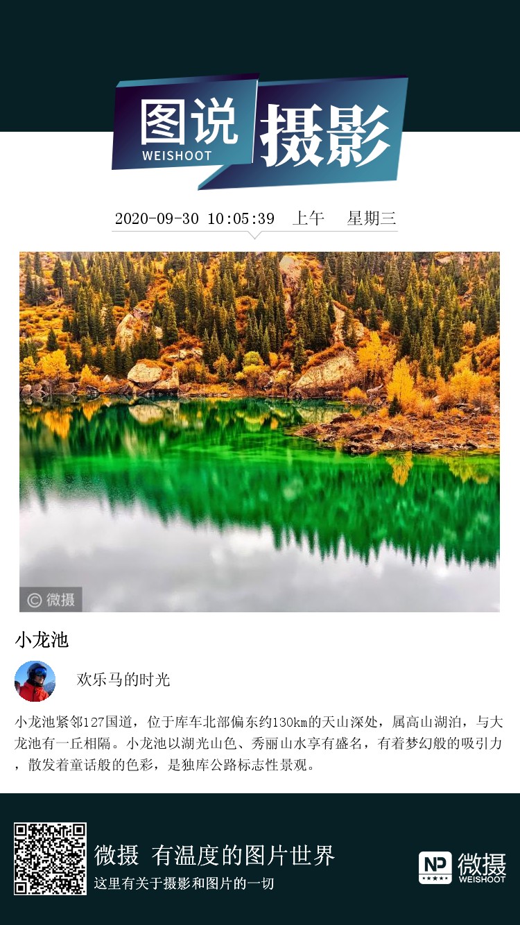 小龙池紧邻127国道,位于库车北部偏东约130km的天山深处,属高山湖泊,与大龙池有一丘相隔。小龙池以湖光山色、秀丽山水享有盛名,有着梦幻般的吸引力,散发着童话般的色彩,是独库公路标志性景观。