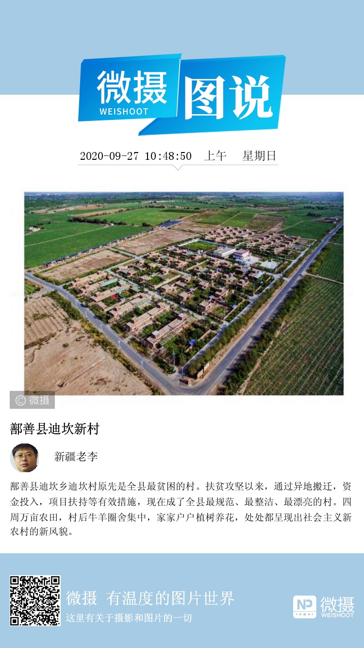 鄯善县迪坎乡迪坎村原先是全县最贫困的村。扶贫攻坚以来,通过异地搬迁,资金投入,项目扶持等有效措施,现在成了全县最规范、最整洁、最漂亮的村。四周万亩农田,村后牛羊圈舍集中,家家户户植树养花,处处都呈现出社会主义新农村的新风貌。