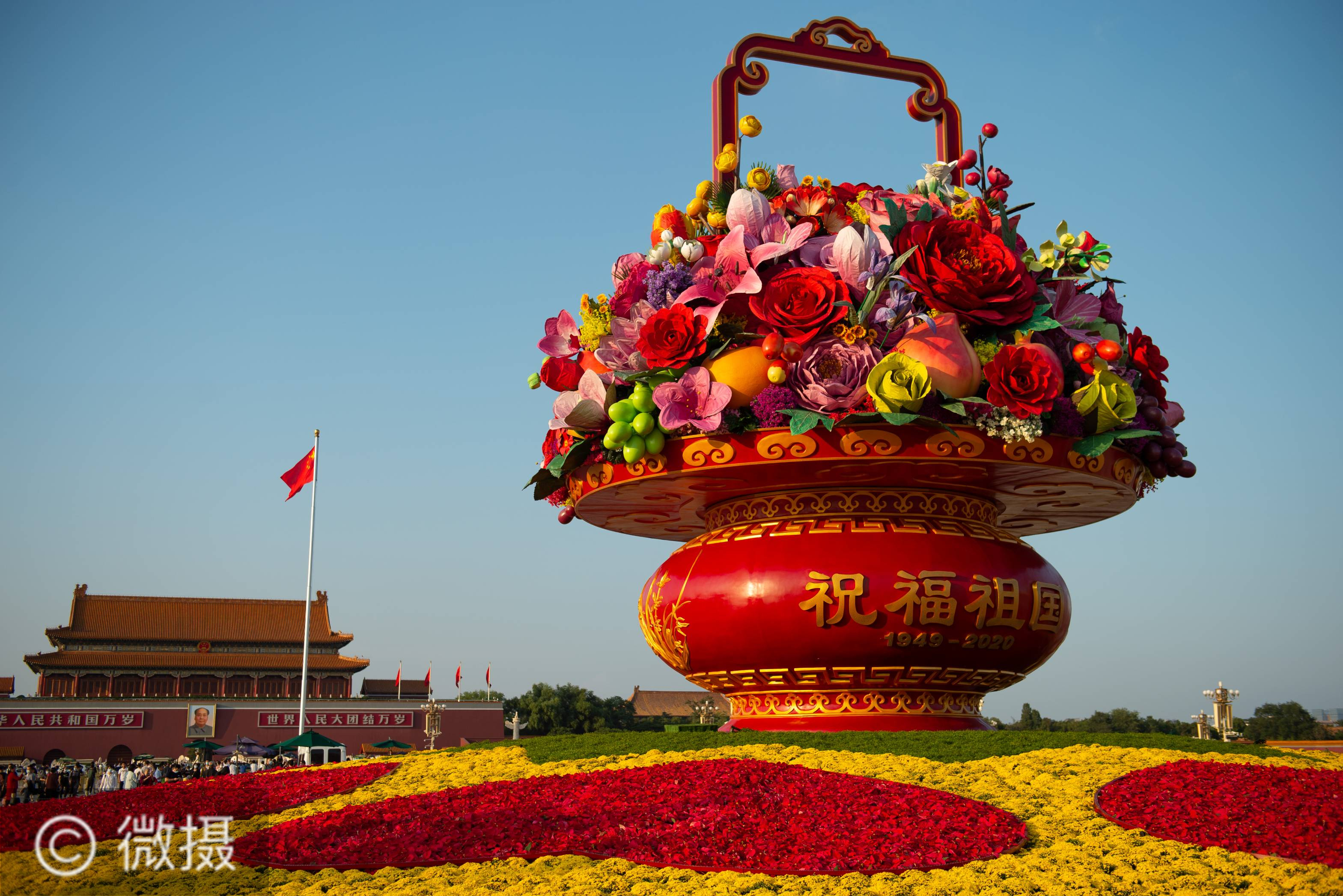这是9月24日拍摄的“祝福祖国”大花篮。当日,“祝福祖国”大花篮主体完工,亮相天安门广场。大花篮顶高18米,篮内摆放有全国各地代表性“花卉”及富有吉祥寓意的“果实”,花坛底部则是由鲜花构成的10颗红心图案。大花篮计划于25日正式完工。新华社记者陈钟昊摄