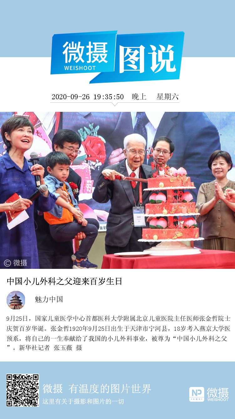 9月25日,国家儿童医学中心首都医科大学附属北京儿童医院主任医师张金哲院士庆贺百岁华诞。张金哲1920年9月25日出生于天津市宁河县,18岁考入燕京大学医预系,将自己的一生奉献给了我国的小儿外科事业,被尊为“中国小儿外科之父”。新华社记者 张玉薇 摄