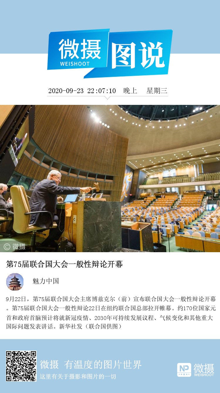9月22日,第75届联合国大会主席博兹克尔(前)宣布联合国大会一般性辩论开幕。第75届联合国大会一般性辩论22日在纽约联合国总部拉开帷幕。约170位国家元首和政府首脑预计将就新冠疫情、2030年可持续发展议程、气候变化和其他重大国际问题发表讲话。新华社发(联合国供图)