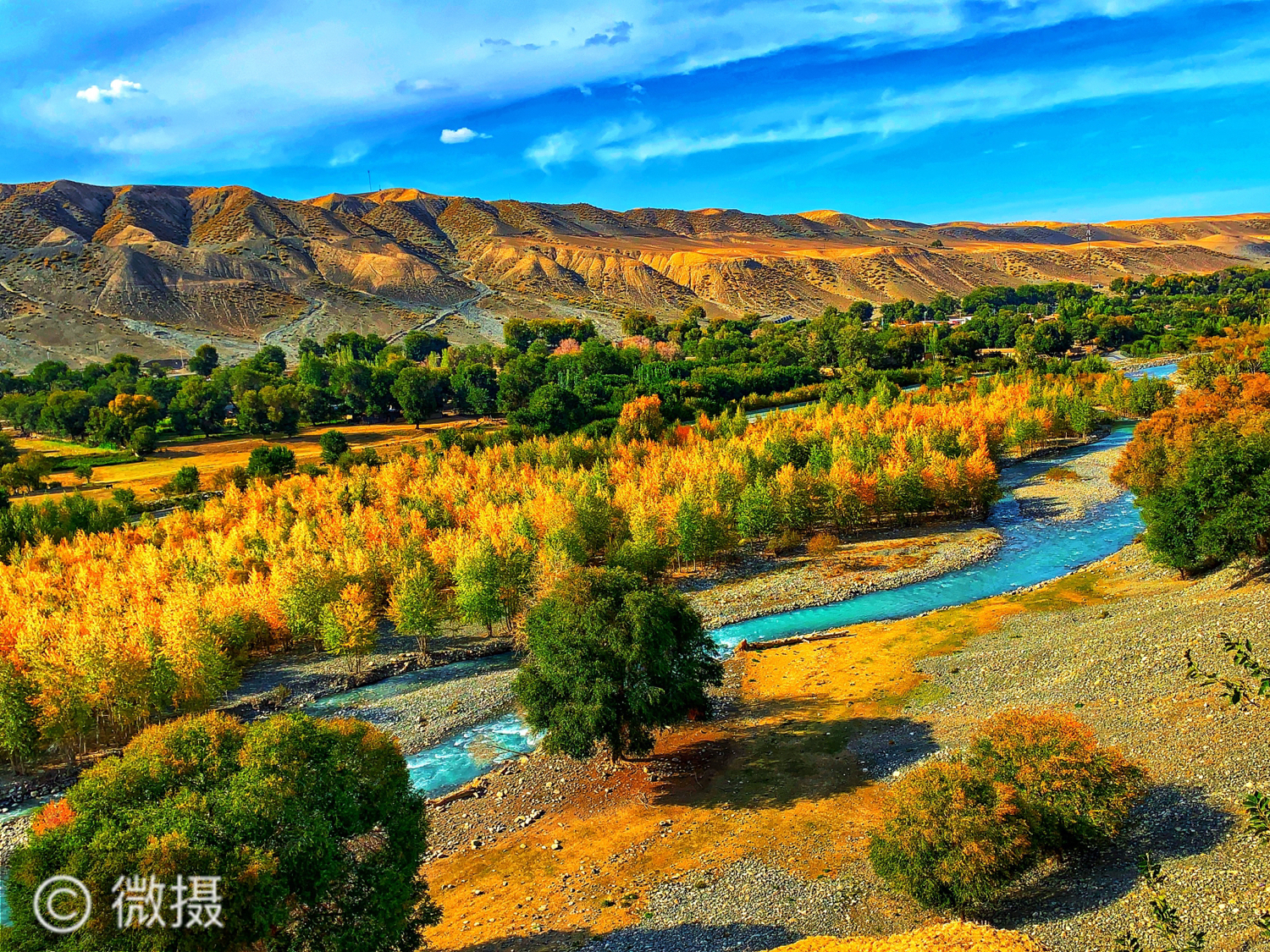 古老的塔西河发源于依连哈比尔尕山北麓的雪山冰川(与玛纳斯河构成玛纳斯县两大水系),秋天的塔西河色彩斑斓清奇秀丽,浑厚雄伟的山体、清澈的水流,与其周边五彩的雅丹地貌有机结合,组成了具有极高观赏价值的山水景观。