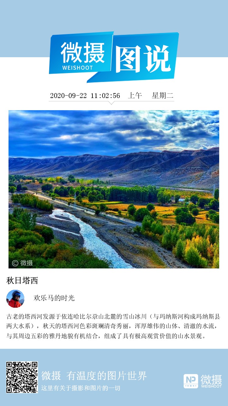 古老的塔西河发源于依连哈比尔尕山北麓的雪山冰川(与玛纳斯河构成玛纳斯县两大水系),秋天的塔西河色彩斑斓清奇秀丽,浑厚雄伟的山体、清澈的水流,与其周边五彩的雅丹地貌有机结合,组成了具有极高观赏价值的山水景观。