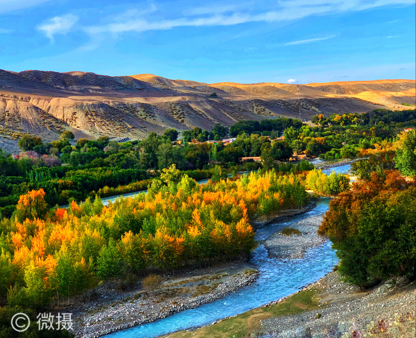 古老的塔西河发源于依连哈比尔尕山北麓的雪山冰川(与玛纳斯河构成玛纳斯县两大水系),秋天的塔西河色彩斑斓清奇秀丽,浑厚雄伟的山体、清澈的水流,与其周边五彩的雅丹地貌有机结合,组成了具有极高观赏价值的山水景观。