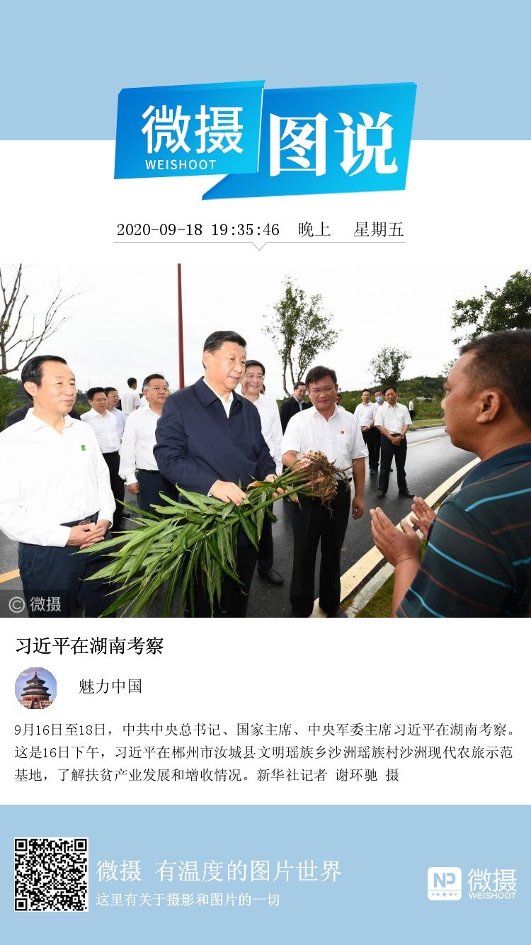 9月16日至18日,中共中央总书记、国家主席、中央军委主席习近平在湖南考察。这是16日下午,习近平在郴州市汝城县文明瑶族乡沙洲瑶族村沙洲现代农旅示范基地,了解扶贫产业发展和增收情况。新华社记者 谢环驰 摄