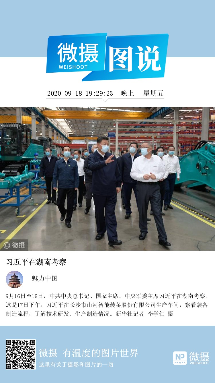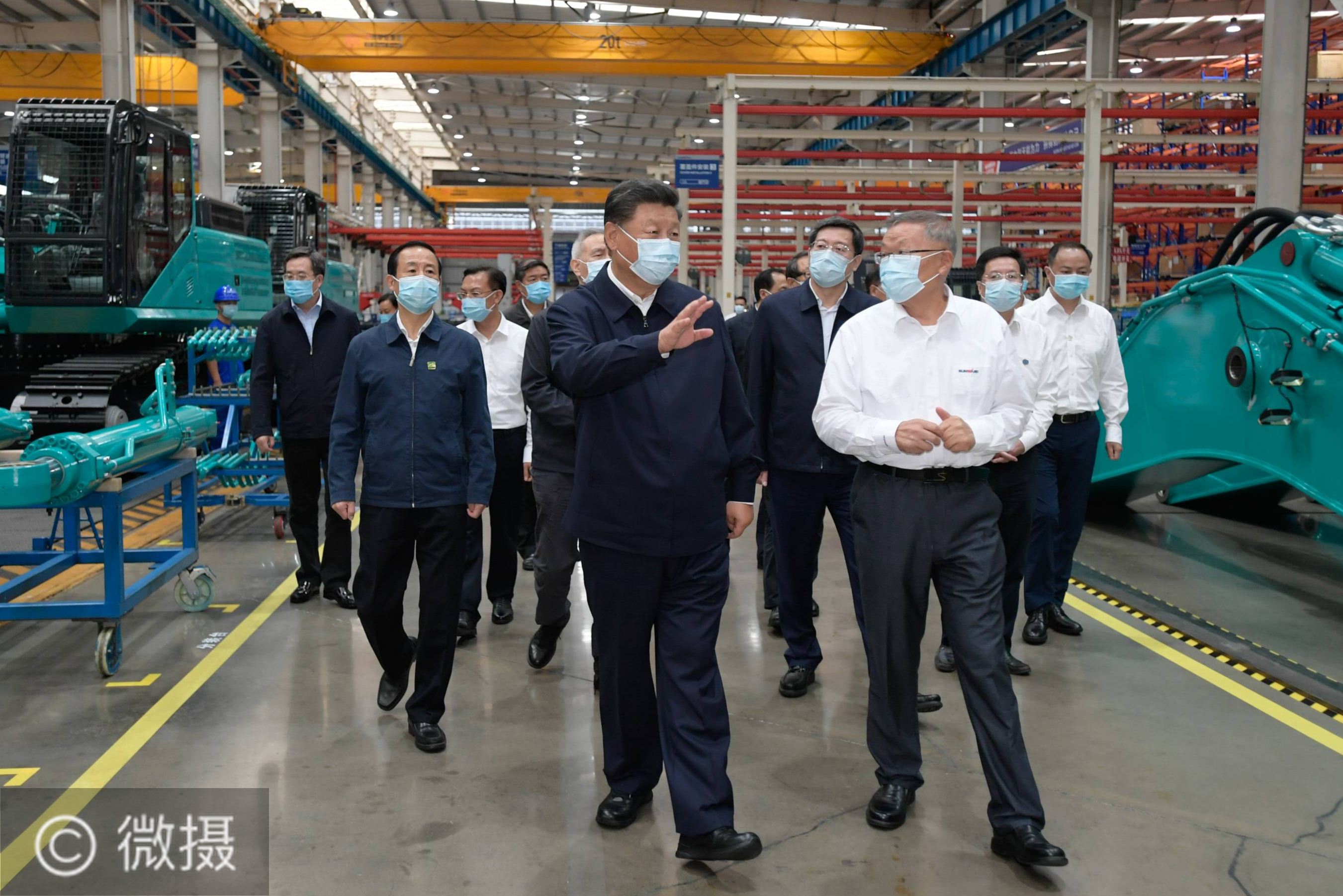 9月16日至18日,中共中央总书记、国家主席、中央军委主席习近平在湖南考察。这是17日下午,习近平在长沙市山河智能装备股份有限公司生产车间,察看装备制造流程,了解技术研发、生产制造情况。新华社记者 李学仁 摄