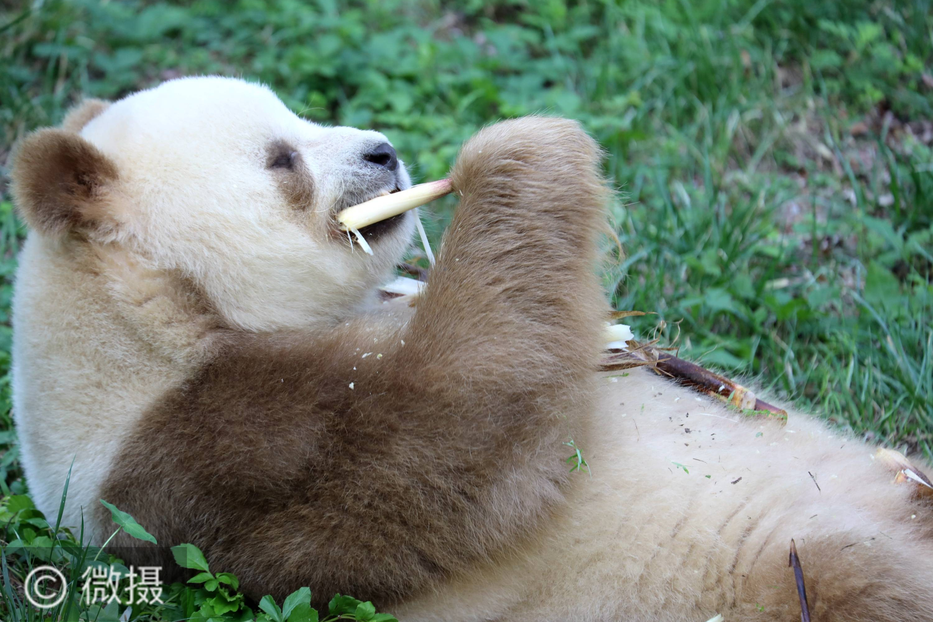 9月17日,“七仔”在位于陕西西安的秦岭大熊猫研究中心吃竹笋。生活在陕西西安秦岭大熊猫研究中心的“七仔”是世界唯一圈养棕色大熊猫。今年11岁的“七仔”因独特的毛色与憨态可掬的吃相走红网络,深受大家喜爱。在工作人员的悉心照料下,目前“七仔”身体状况良好。新华社记者梁娟摄