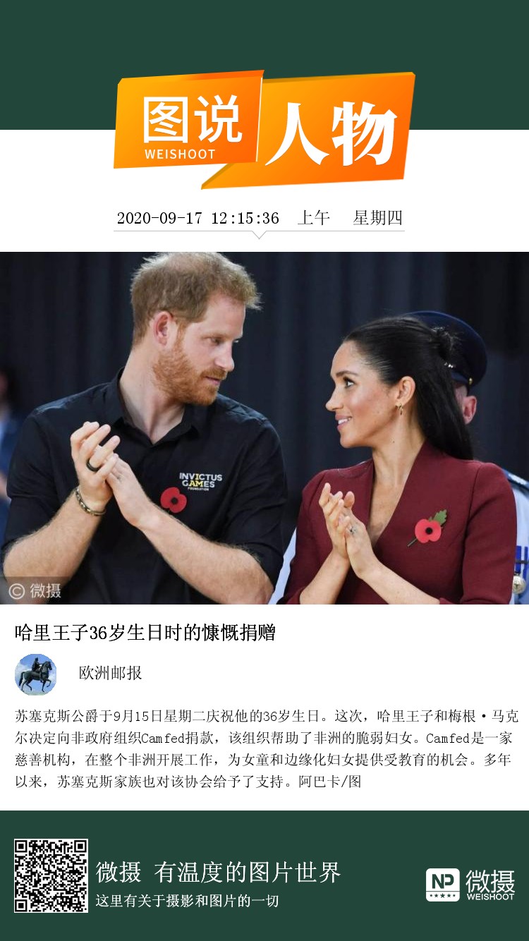 苏塞克斯公爵于9月15日星期二庆祝他的36岁生日。这次,哈里王子和梅根·马克尔决定向非政府组织Camfed捐款,该组织帮助了非洲的脆弱妇女。Camfed是一家慈善机构,在整个非洲开展工作,为女童和边缘化妇女提供受教育的机会。多年以来,苏塞克斯家族也对该协会给予了支持。阿巴卡/图