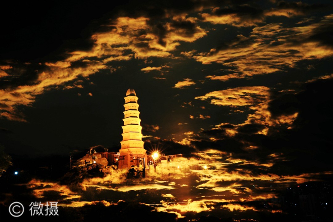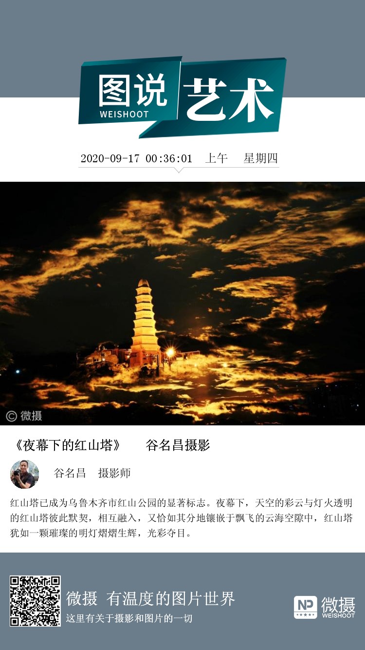 红山塔已成为乌鲁木齐市红山公园的显著标志。夜幕下,天空的彩云与灯火透明的红山塔彼此默契,相互融入,又恰如其分地镶嵌于飘飞的云海空隙中,红山塔犹如一颗璀璨的明灯熠熠生辉,光彩夺目。