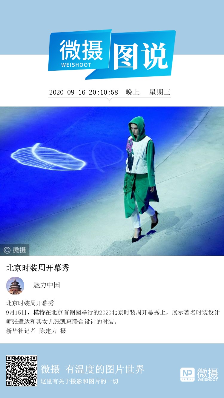 北京时装周开幕秀 9月15日,模特在北京首钢园举行的2020北京时装周开幕秀上,展示著名时装设计师张肇达和其女儿张凯惠联合设计的时装。 新华社记者 陈建力 摄