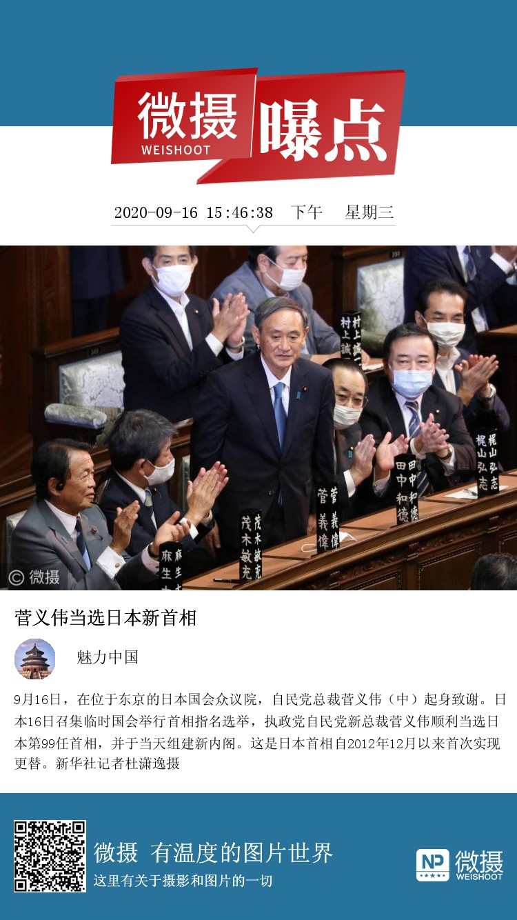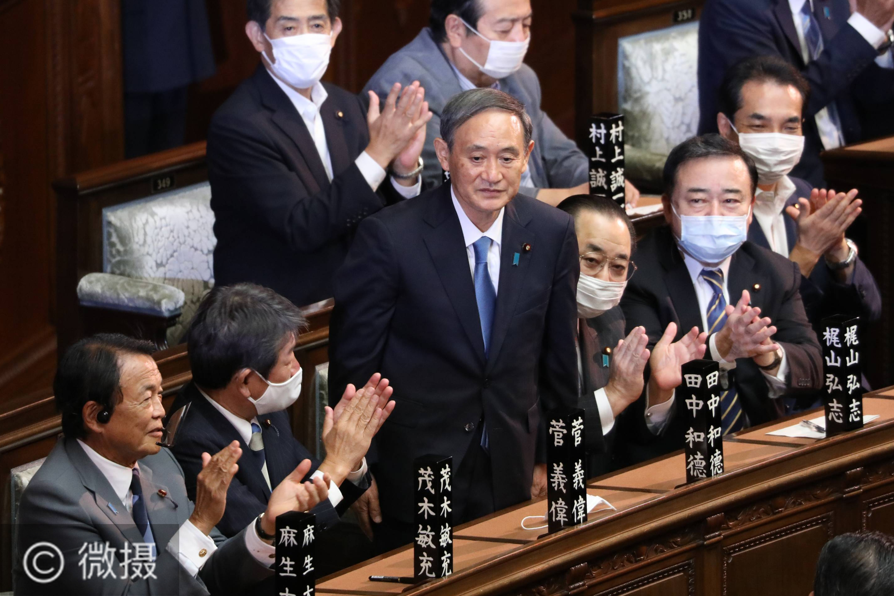 9月16日,在位于东京的日本国会众议院,自民党总裁菅义伟(中)起身致谢。日本16日召集临时国会举行首相指名选举,执政党自民党新总裁菅义伟顺利当选日本第99任首相,并于当天组建新内阁。这是日本首相自2012年12月以来首次实现更替。新华社记者杜潇逸摄