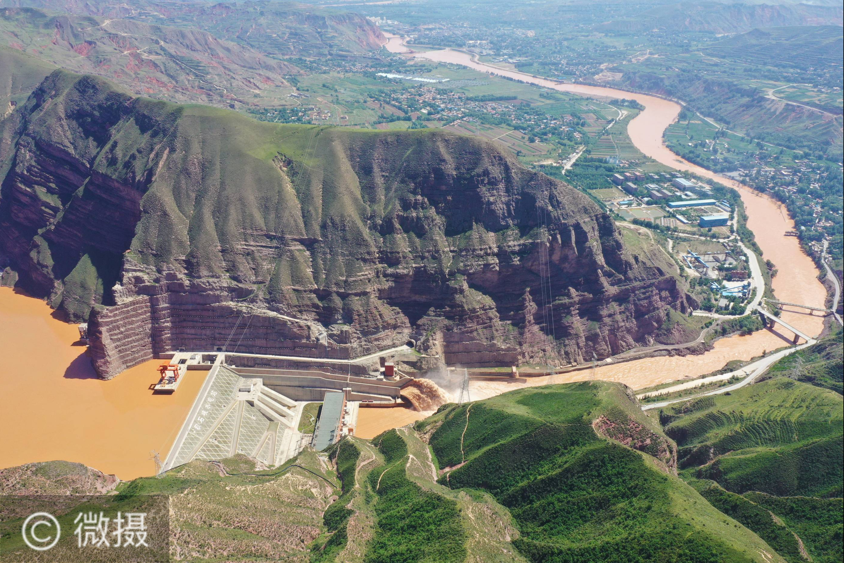 这是8月9日在青海省循化撒拉族自治县拍摄的积石峡水电站(无人机照片)。循化撒拉族自治县位于青海省东部黄河谷地,地处青藏高原边缘地带,黄河流经循化90多公里。循化县是中国撒拉族的发祥地,黄河沿岸自然景观绚丽多彩、风土人情浓郁独特、丹霞地貌雄伟壮观。新华社记者 邢广利 摄