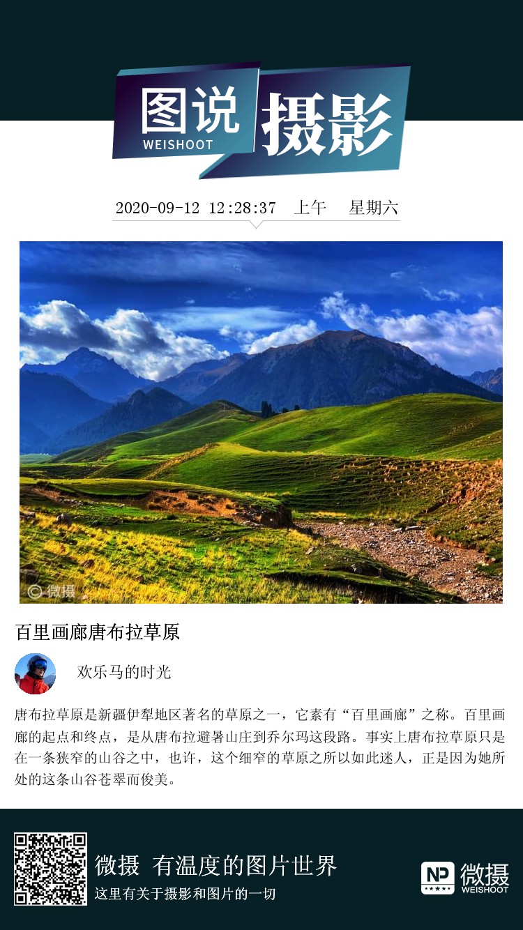 唐布拉草原是新疆伊犁地区著名的草原之一,它素有“百里画廊”之称。百里画廊的起点和终点,是从唐布拉避暑山庄到乔尔玛这段路。事实上唐布拉草原只是在一条狭窄的山谷之中,也许,这个细窄的草原之所以如此迷人,正是因为她所处的这条山谷苍翠而俊美。