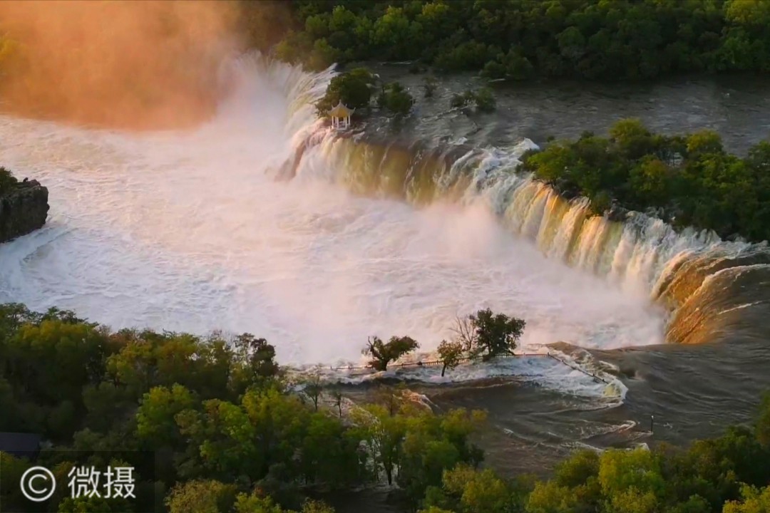 镜泊湖百年一遇的大洪水,瀑布壮美!