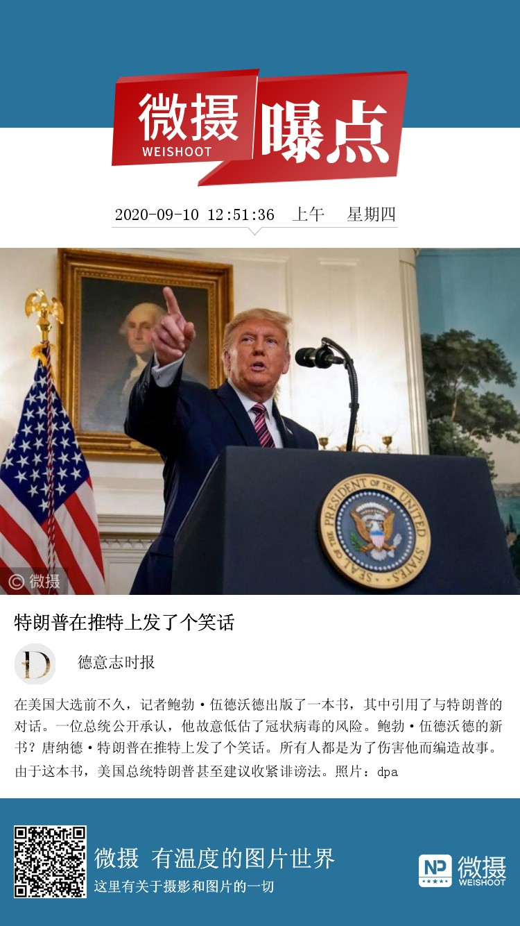 在美国大选前不久,记者鲍勃·伍德沃德出版了一本书,其中引用了与特朗普的对话。一位总统公开承认,他故意低估了冠状病毒的风险。鲍勃·伍德沃德的新书?唐纳德·特朗普在推特上发了个笑话。所有人都是为了伤害他而编造故事。由于这本书,美国总统特朗普甚至建议收紧诽谤法。照片:dpa