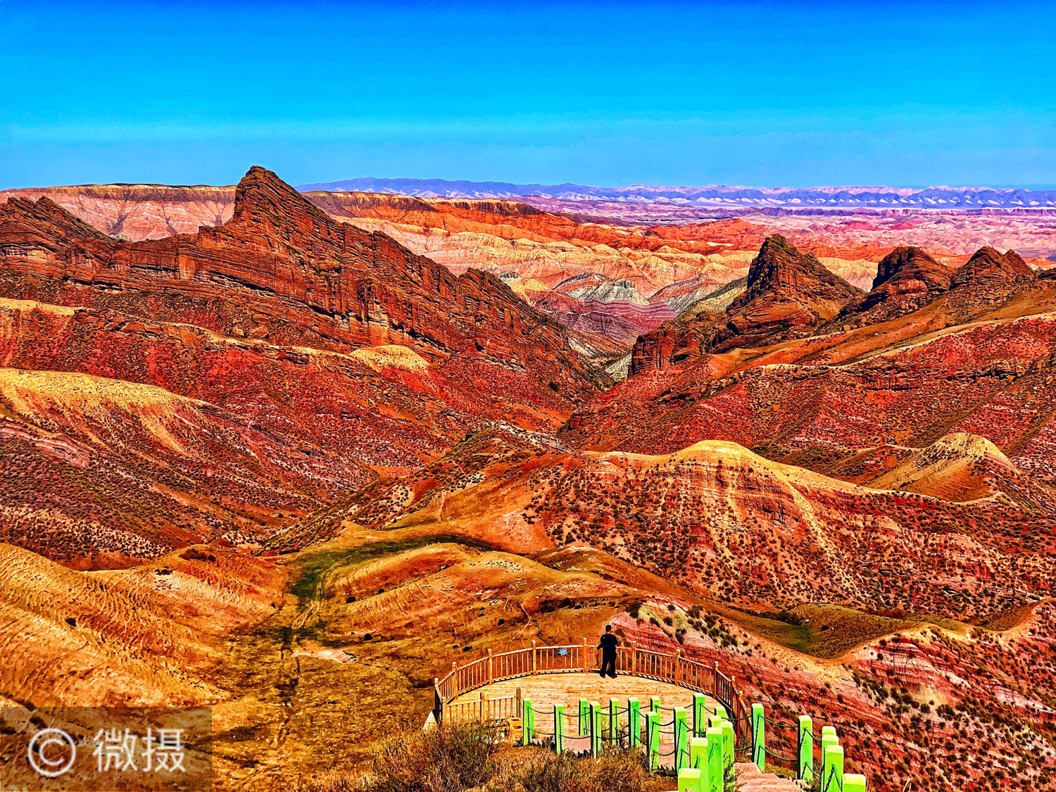 新疆天山百里丹霞地貌,形成侏罗纪时代,距今约2.0~1.4亿年,岩性为紫红色砾岩,砂岩互层结构。由于构造运动、风化、剥蚀等地质作用形成了单斜峰丛地貌,呈东西展布。高耸的单斜山与底部连绵起伏的岩丘,共同构成一幅壮美的锦绣河山画面。