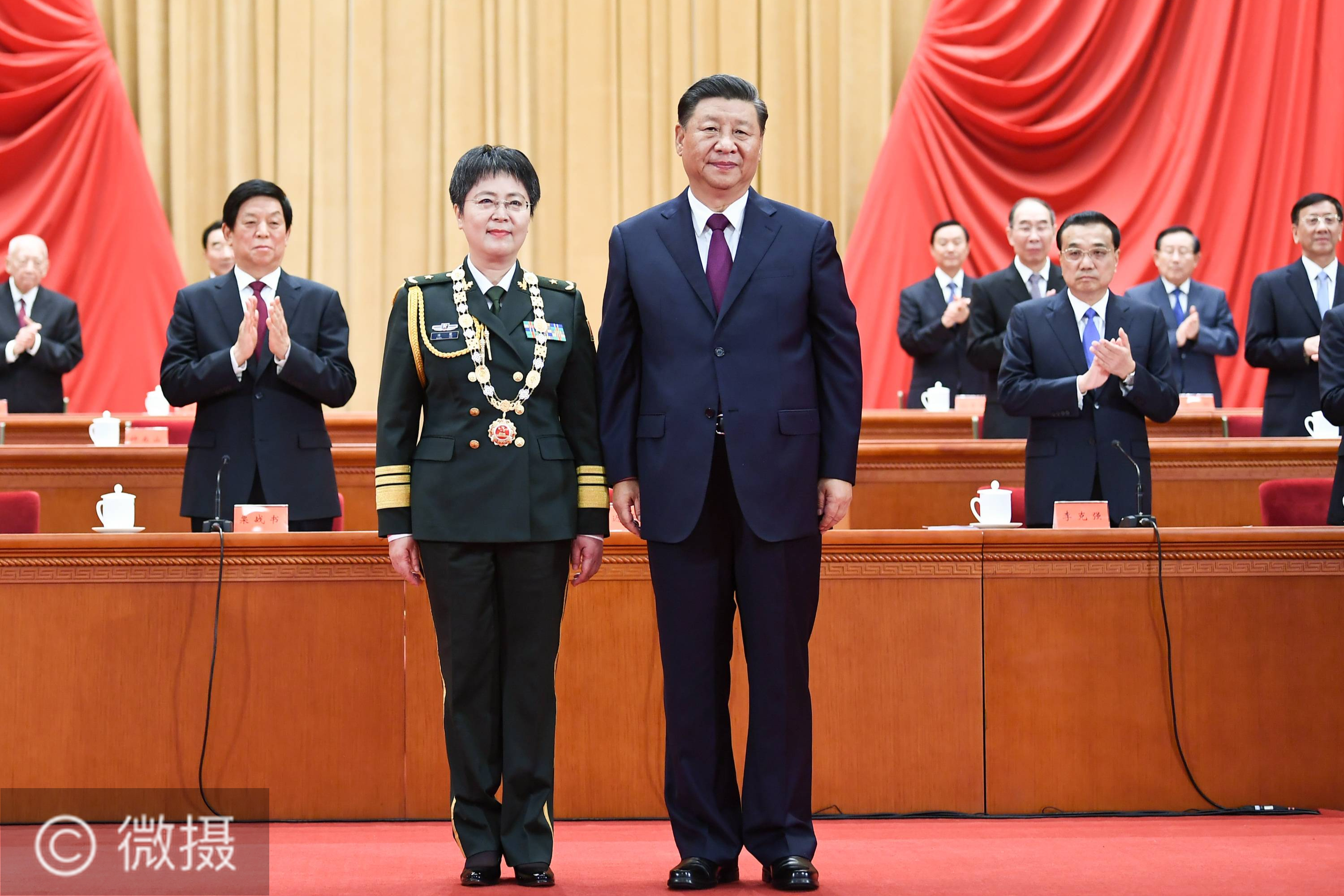 9月8日,全国抗击新冠肺炎疫情表彰大会在北京人民大会堂隆重举行。中共中央总书记、国家主席、中央军委主席习近平向“人民英雄”国家荣誉称号获得者陈薇颁授奖章。新华社记者 谢环驰 摄