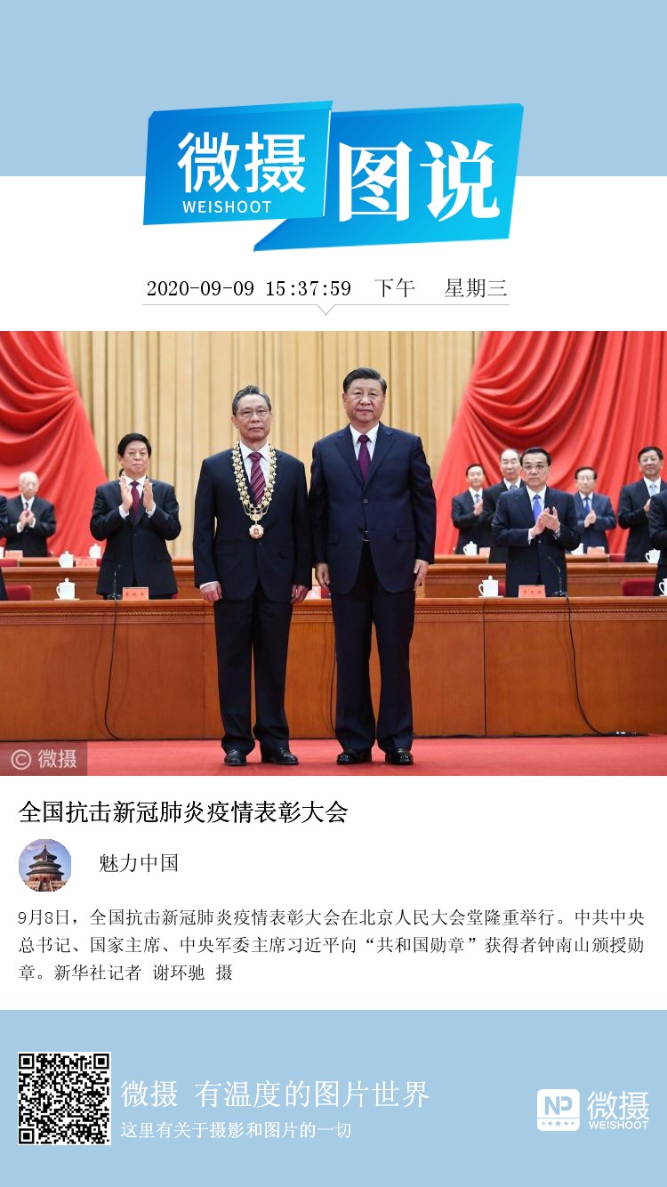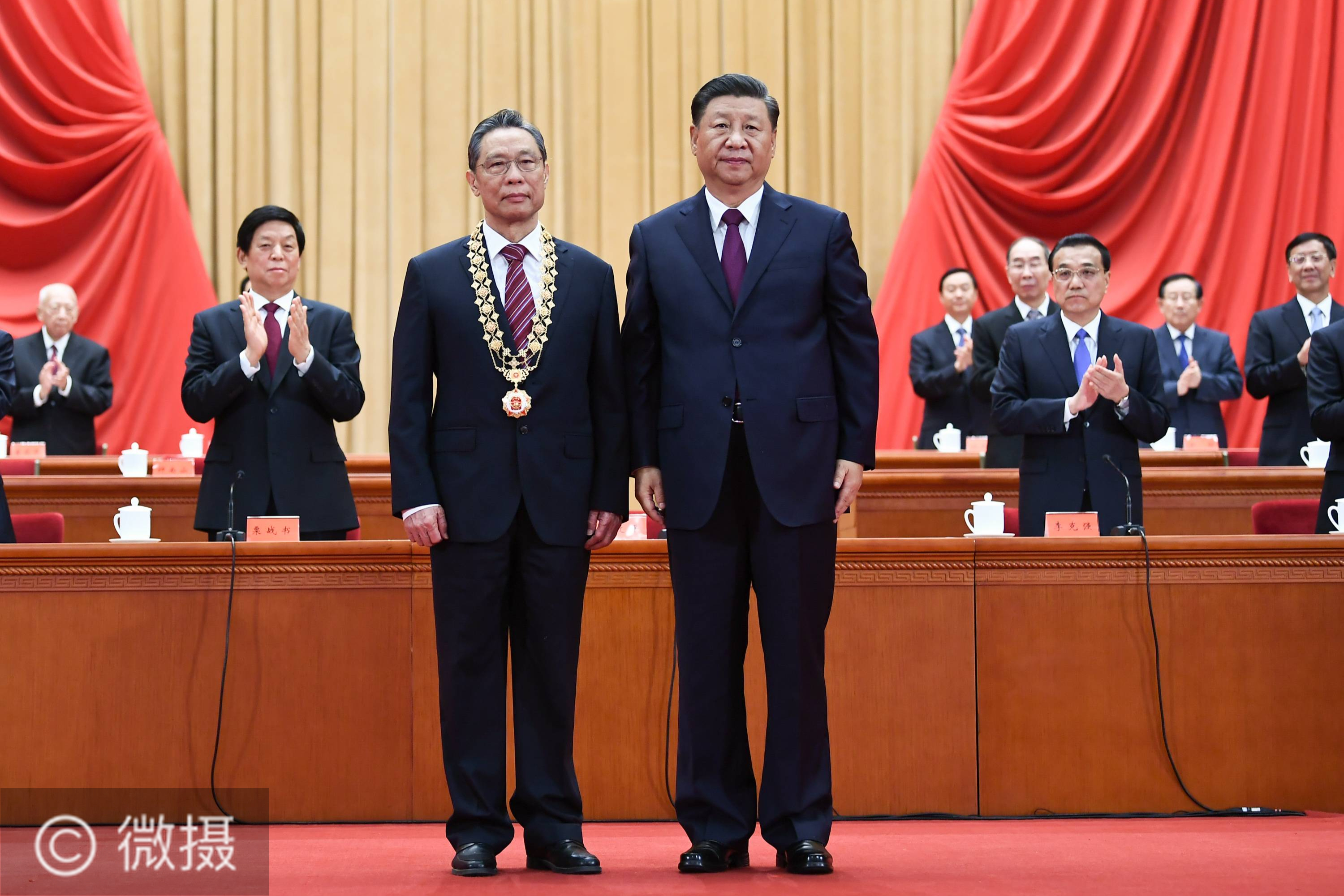 9月8日,全国抗击新冠肺炎疫情表彰大会在北京人民大会堂隆重举行。中共中央总书记、国家主席、中央军委主席习近平向“共和国勋章”获得者钟南山颁授勋章。新华社记者 谢环驰 摄