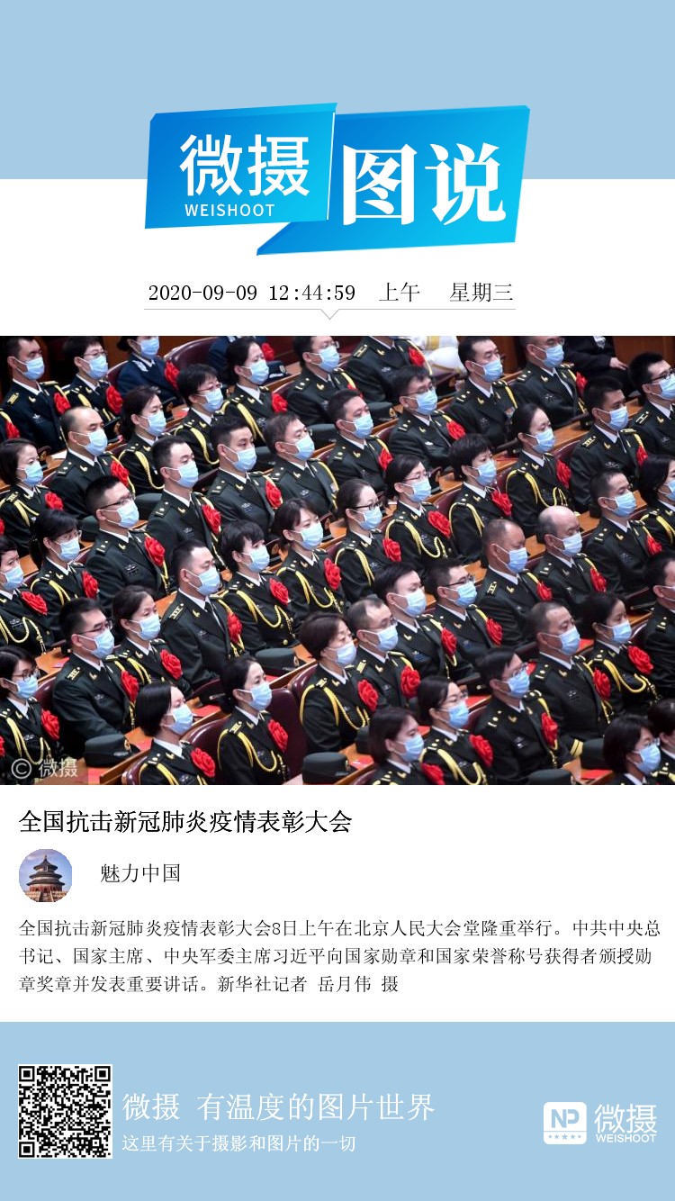 全国抗击新冠肺炎疫情表彰大会8日上午在北京人民大会堂隆重举行。中共中央总书记、国家主席、中央军委主席习近平向国家勋章和国家荣誉称号获得者颁授勋章奖章并发表重要讲话。新华社记者 岳月伟 摄