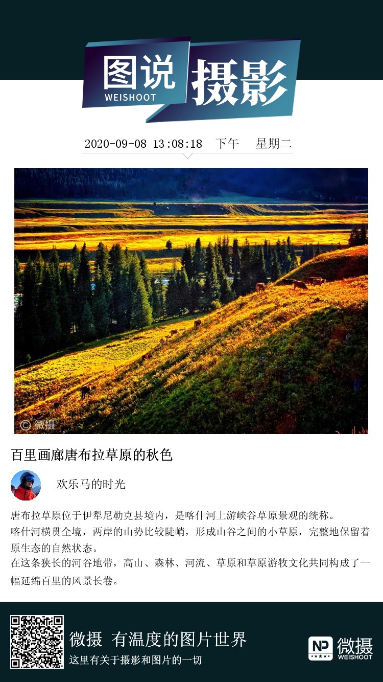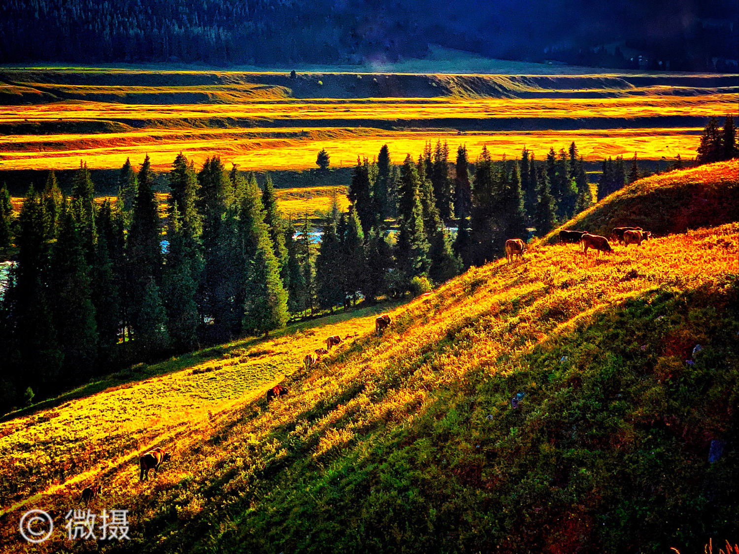 唐布拉草原位于伊犁尼勒克县境内,是喀什河上游峡谷草原景观的统称。 喀什河横贯全境,两岸的山势比较陡峭,形成山谷之间的小草原,完整地保留着原生态的自然状态。 在这条狭长的河谷地带,高山、森林、河流、草原和草原游牧文化共同构成了一幅延绵百里的风景长卷。