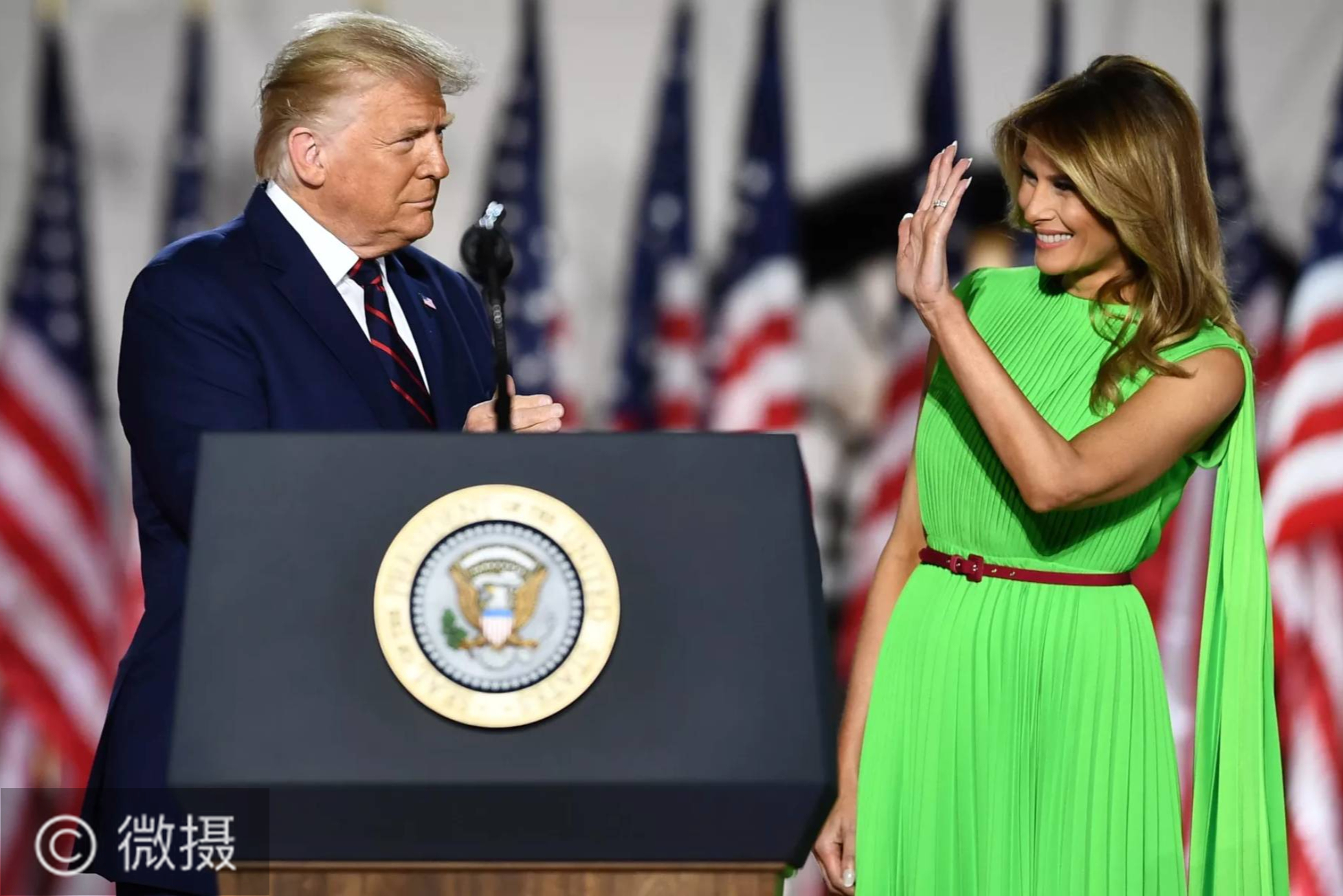 梅拉尼亚·特朗普在共和党就职典礼期间与她的丈夫一起出现。梅拉尼娅的霓虹绿连衣裙转移了网络注意力。当她的丈夫正式被选为共和党总统大选候选人时,梅拉尼娅·特朗普本周四穿着淡绿色的连衣裙出现,这激发了互联网用户的想象力。布伦丹·斯米亚洛夫斯基/摄影
