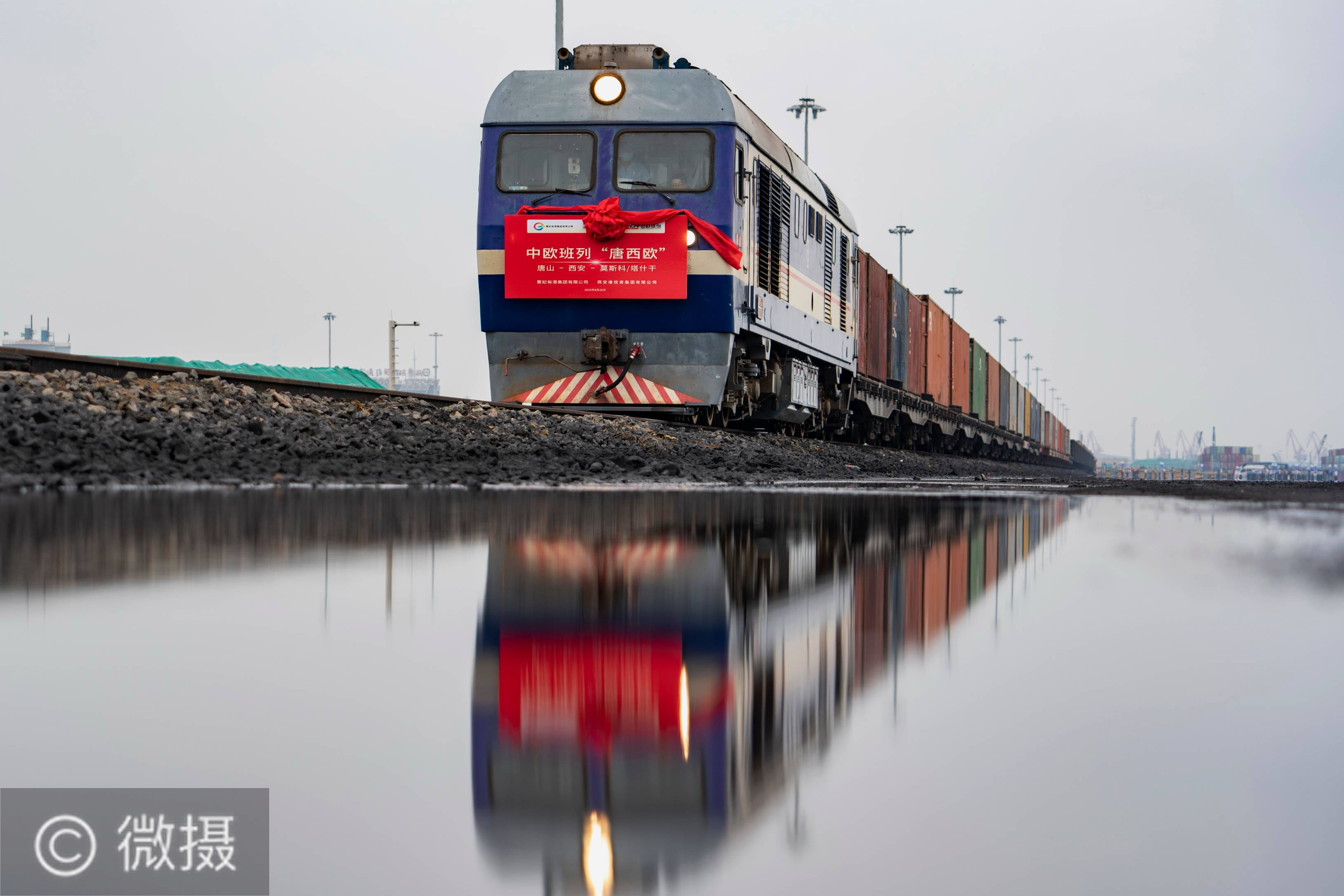 8月26日,“唐西欧”中欧班列从曹妃甸港通用码头铁路场站驶出。当日,河北唐山通往欧洲的“唐西欧”中欧班列从曹妃甸港通用码头铁路场站启程。该班列是由唐山开出的首列经西安通达欧洲的中欧班列,搭载有自行车和汽车配件、轮胎、鞋等货物。新华社记者杨世尧摄