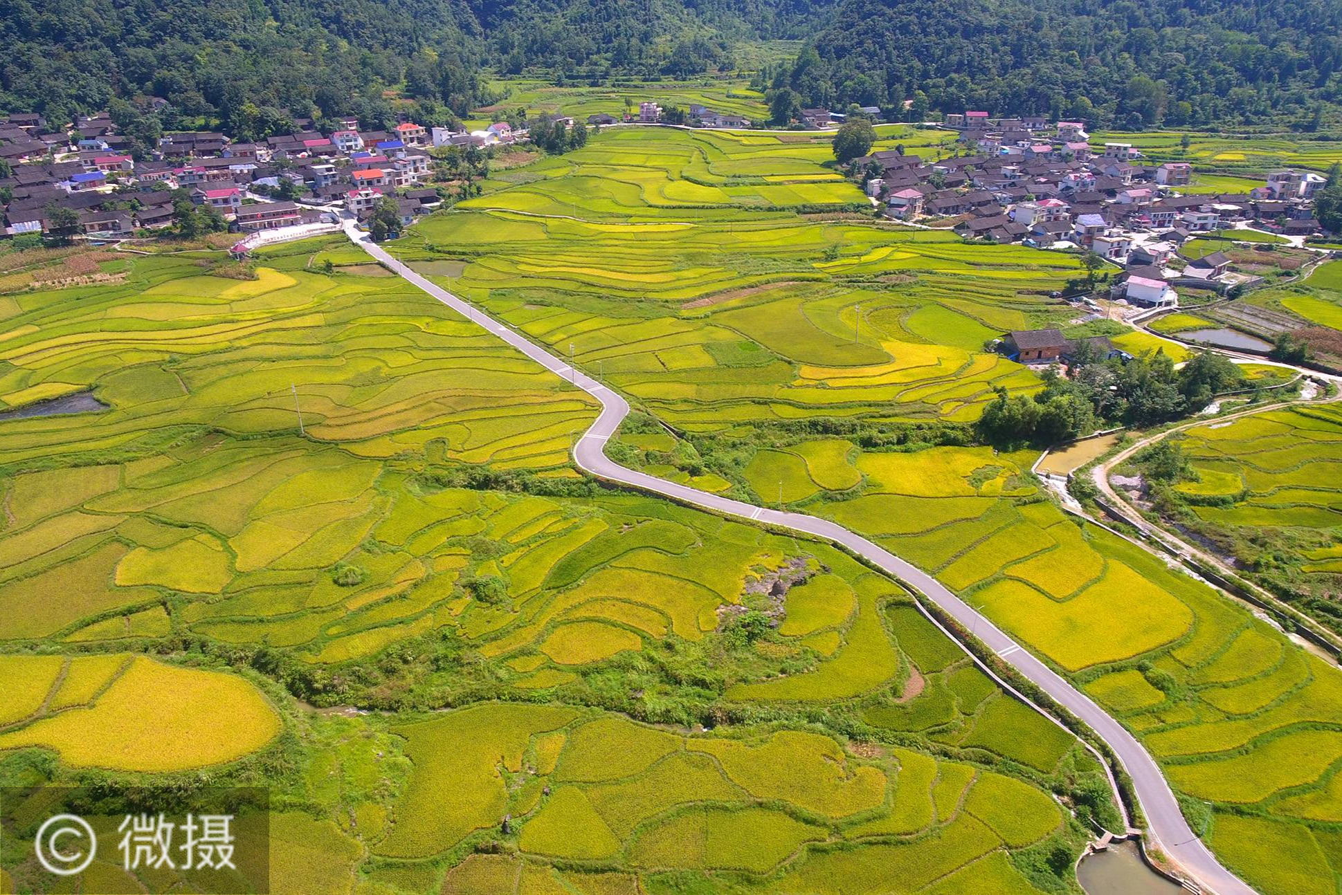 丰收在望。8月26日拍摄的湖南省花垣县麻栗场镇沙科村的稻田景色(无人机照片)。 时下,浙江、湖南、贵州等地水稻陆续进入成熟期,丰收在望。 新华社发(龙恩泽 摄)