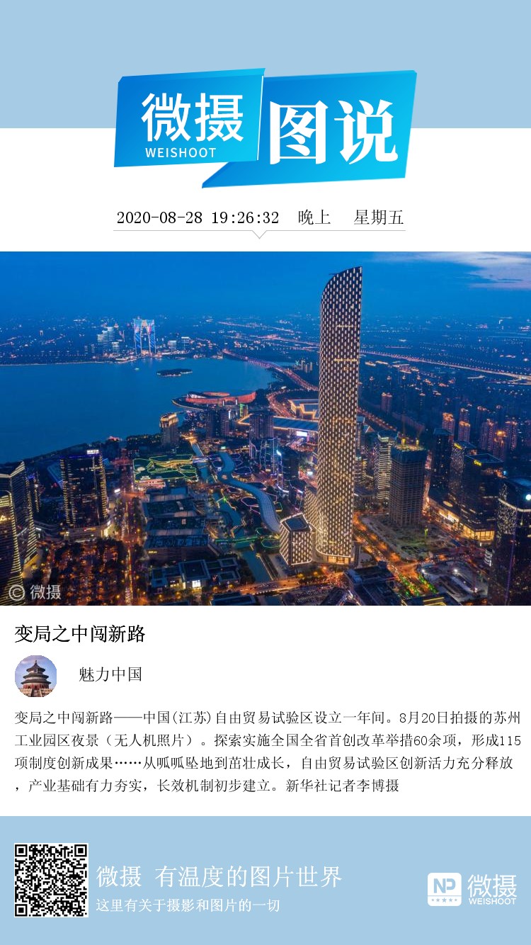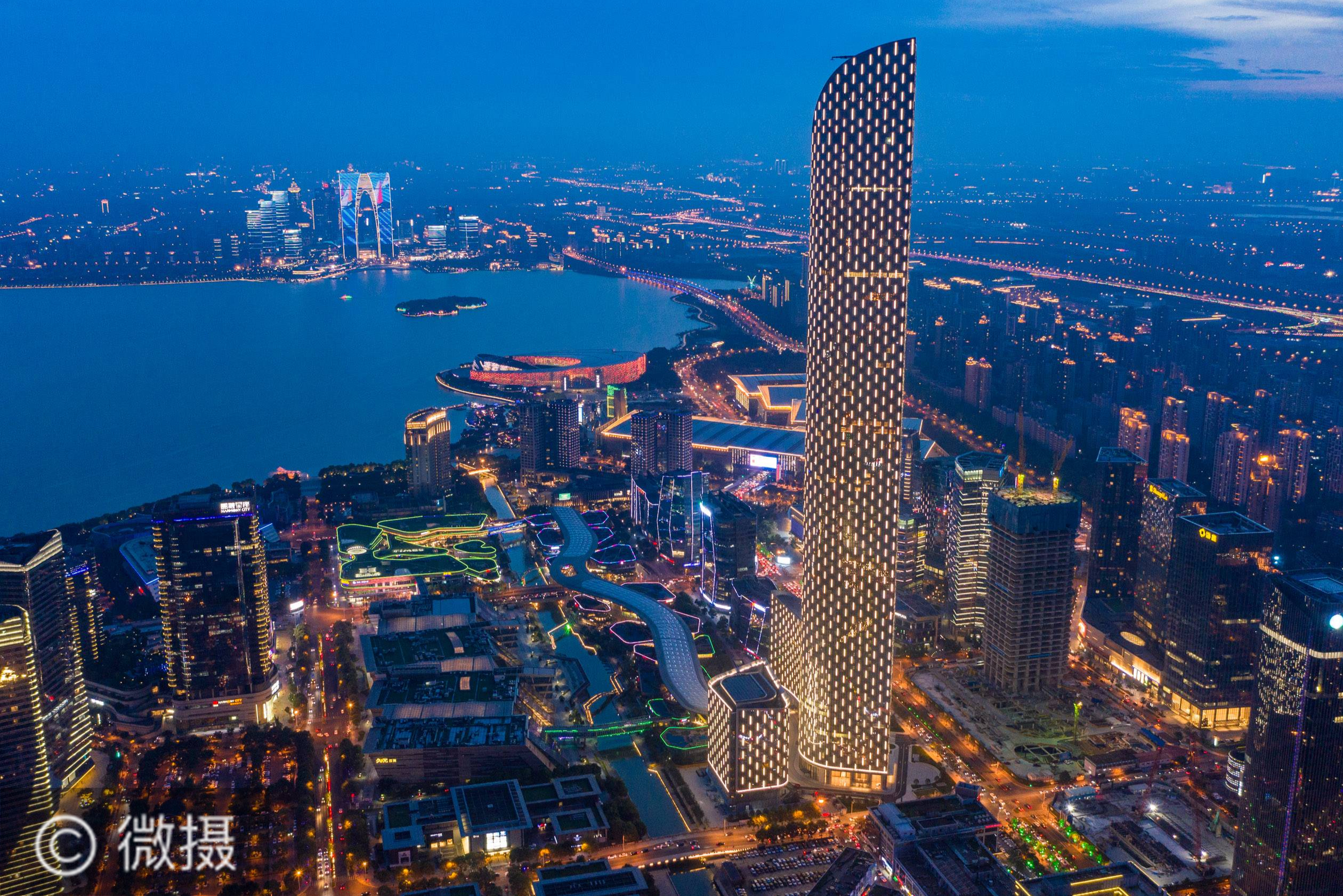 变局之中闯新路——中国(江苏)自由贸易试验区设立一年间。8月20日拍摄的苏州工业园区夜景(无人机照片)。探索实施全国全省首创改革举措60余项,形成115项制度创新成果……从呱呱坠地到茁壮成长,自由贸易试验区创新活力充分释放,产业基础有力夯实,长效机制初步建立。新华社记者李博摄