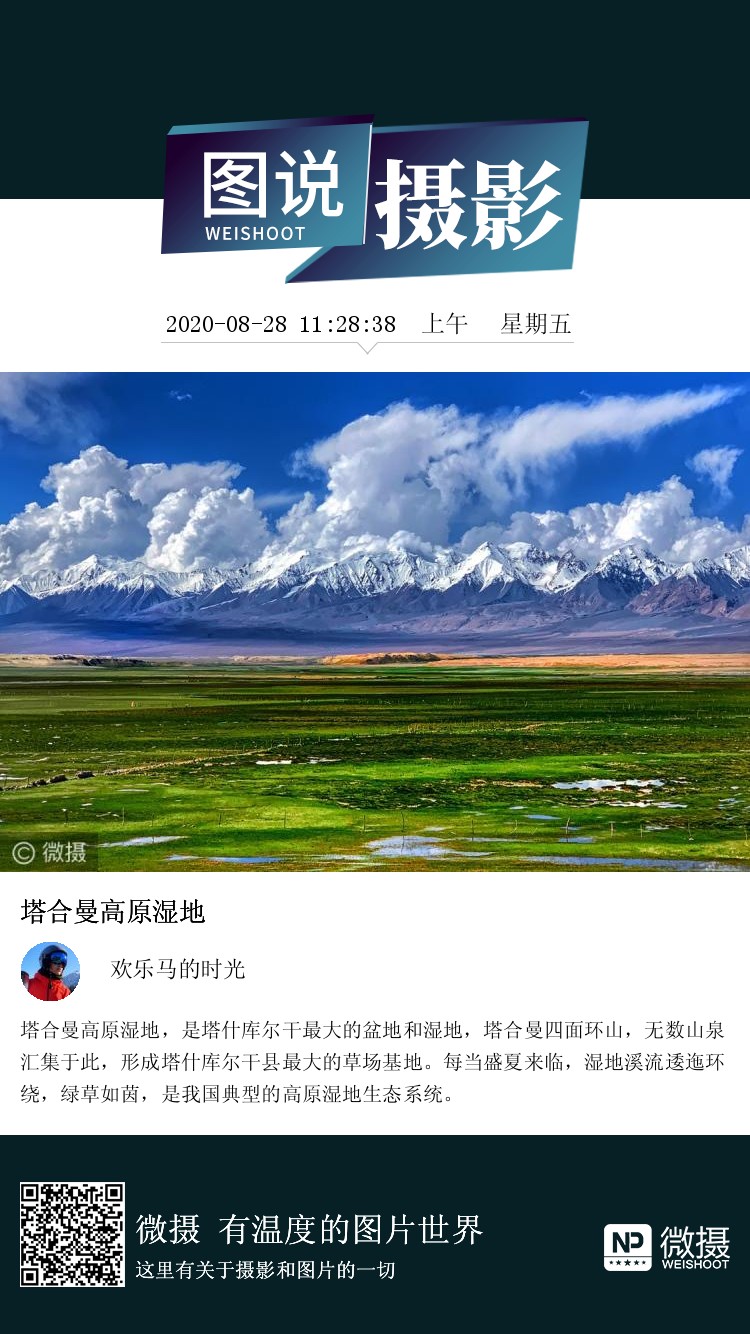 塔合曼高原湿地,是塔什库尔干最大的盆地和湿地,塔合曼四面环山,无数山泉汇集于此,形成塔什库尔干县最大的草场基地。每当盛夏来临,湿地溪流逶迤环绕,绿草如茵,是我国典型的高原湿地生态系统。