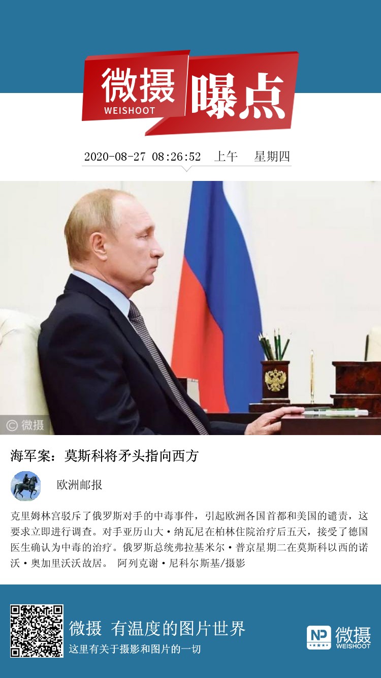 克里姆林宫驳斥了俄罗斯对手的中毒事件,引起欧洲各国首都和美国的谴责,这要求立即进行调查。对手亚历山大·纳瓦尼在柏林住院治疗后五天,接受了德国医生确认为中毒的治疗。俄罗斯总统弗拉基米尔·普京星期二在莫斯科以西的诺沃·奥加里沃沃故居。 阿列克谢·尼科尔斯基/摄影