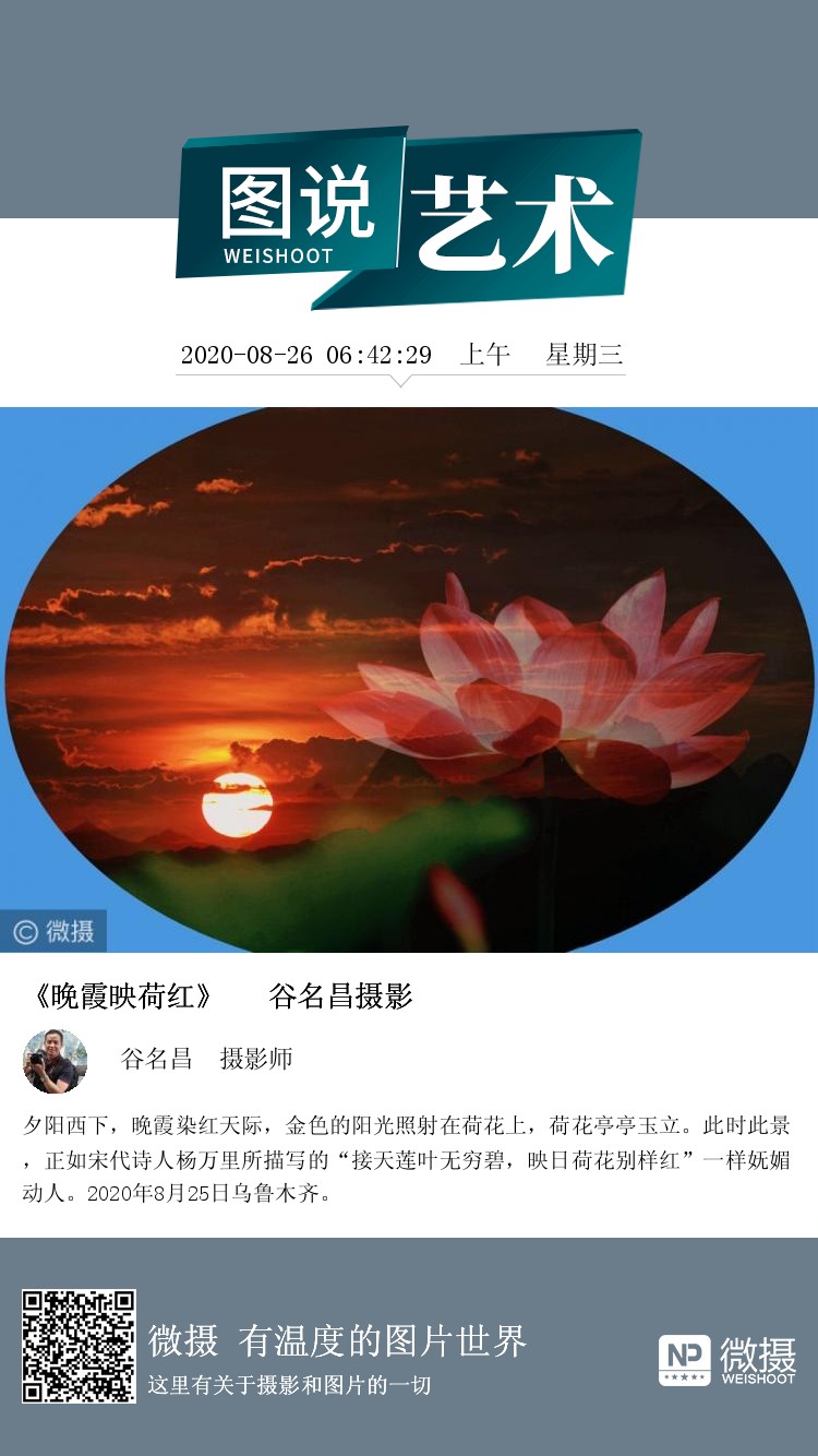 夕阳西下,晚霞染红天际,金色的阳光照射在荷花上,荷花亭亭玉立。此时此景,正如宋代诗人杨万里所描写的“接天莲叶无穷碧,映日荷花别样红”一样妩媚动人。2020年8月25日乌鲁木齐。