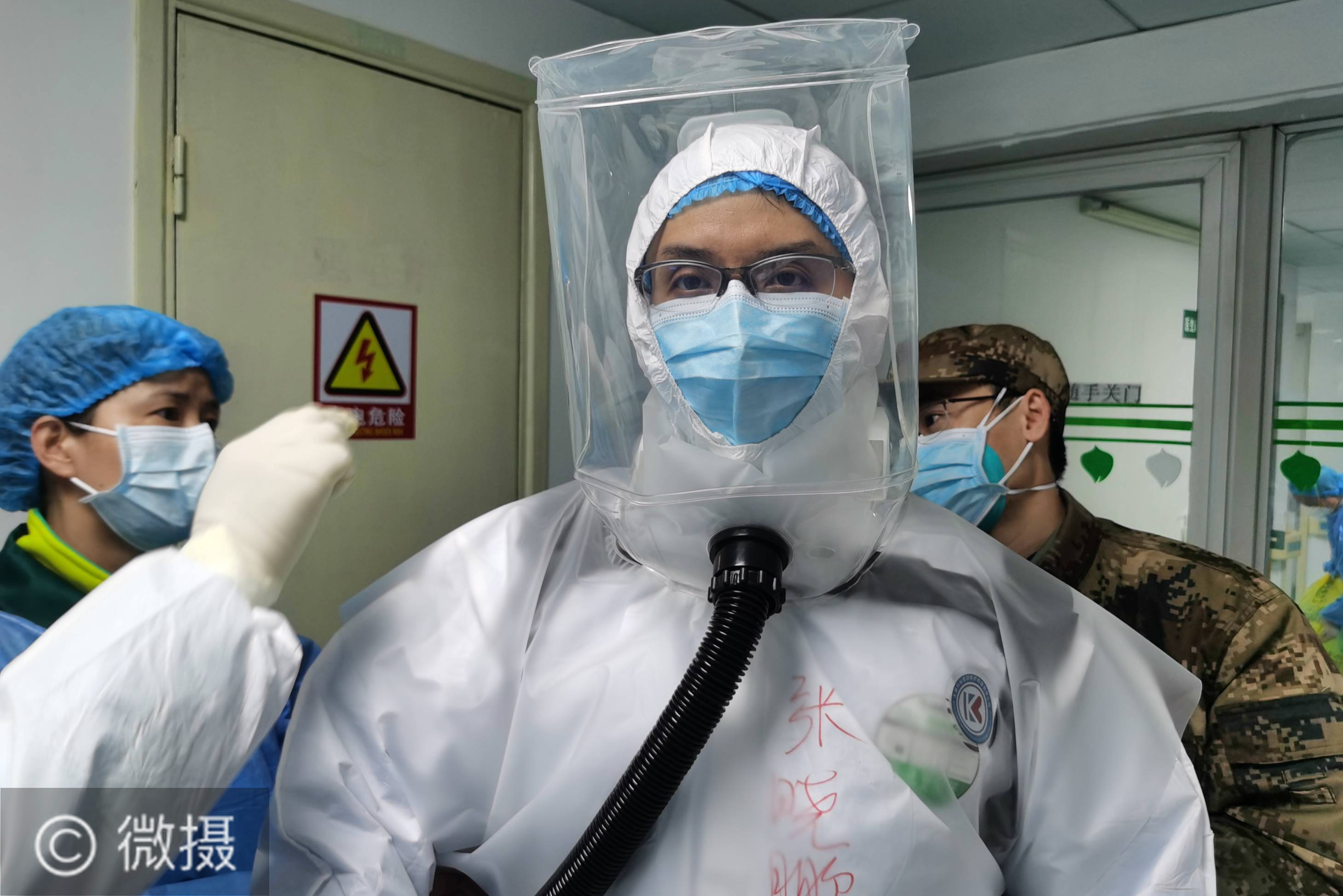 为人民而战的科研尖兵——记“最美新时代革命军人”张晓鹏 在武汉金银潭医院,军事科学院军事医学研究院副研究员张晓鹏(中)穿着正压防护服准备进入“红区”采样(2月10日摄)。 新华社发(张振威 摄)