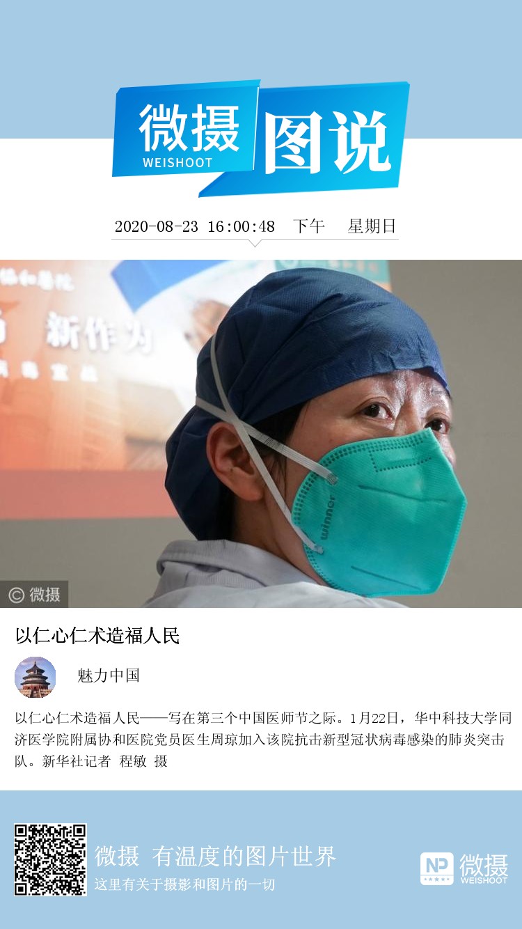 以仁心仁术造福人民——写在第三个中国医师节之际。1月22日,华中科技大学同济医学院附属协和医院党员医生周琼加入该院抗击新型冠状病毒感染的肺炎突击队。新华社记者 程敏 摄