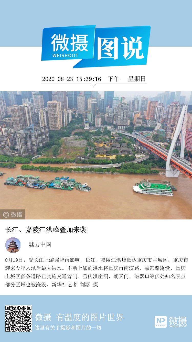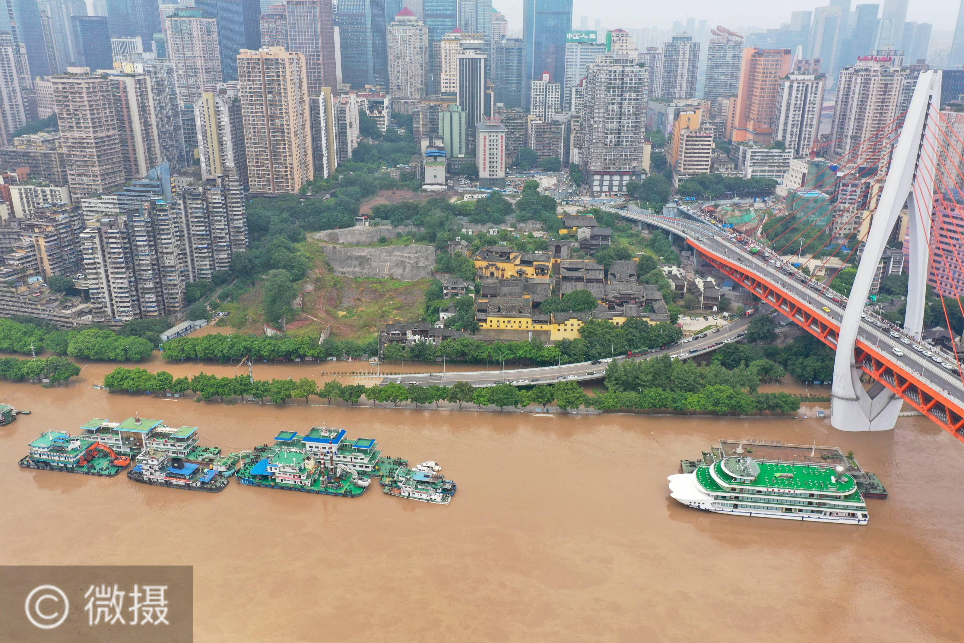 8月19日,受长江上游强降雨影响,长江、嘉陵江洪峰抵达重庆市主城区,重庆市迎来今年入汛后最大洪水。不断上涨的洪水将重庆市南滨路、嘉滨路淹没,重庆主城区多条道路已实施交通管制。重庆洪崖洞、朝天门、磁器口等多处知名景点部分区域也被淹没。新华社记者 刘潺 摄