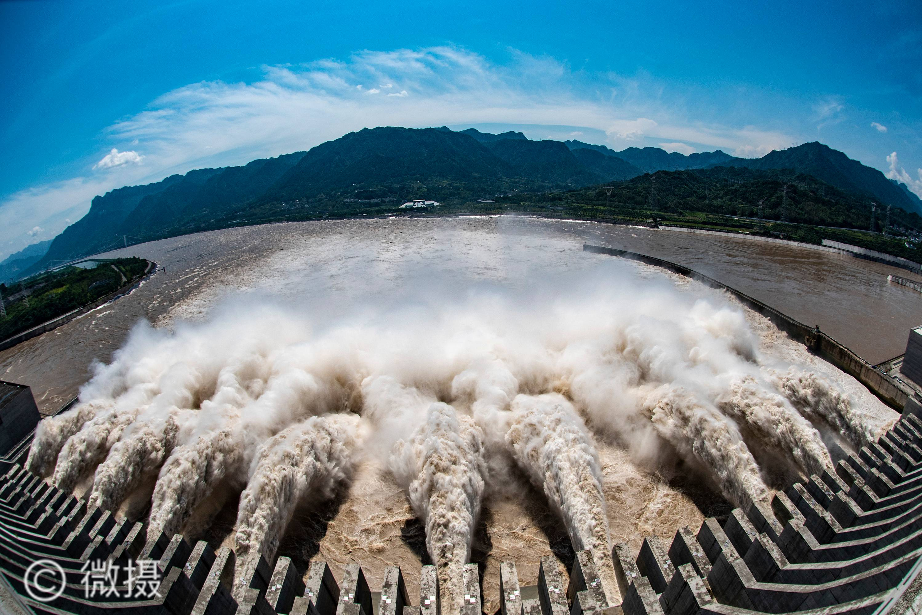 8月19日拍摄的长江三峡水利枢纽工程全景。 长江发生流域性大洪水。针对当前汛情形势,水利部19日9时将水旱灾害防御Ⅲ级应急响应提升至Ⅱ级。水利部有关负责人说,长江上游发生1981年以来最大洪水,预计20日三峡水库将出现建库以来最大入库洪峰76000立方米每秒。新华社发(郑家裕摄)