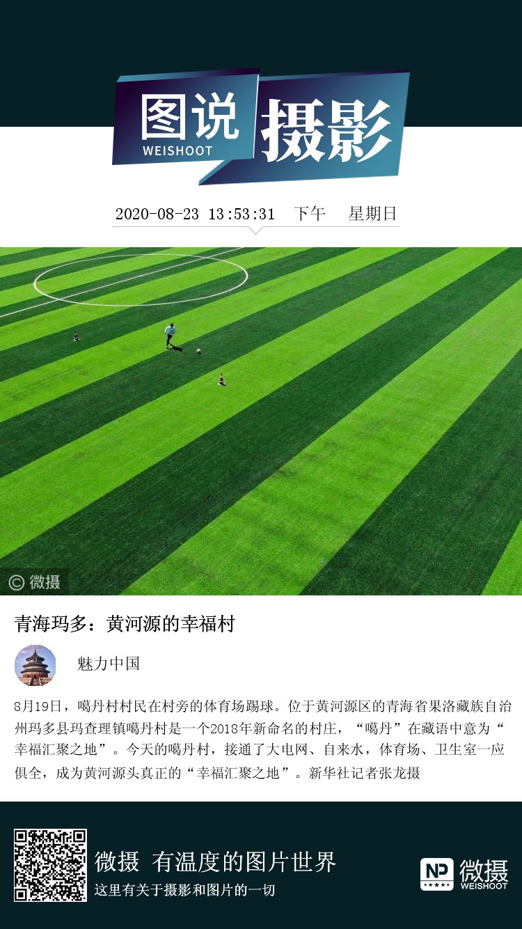8月19日,噶丹村村民在村旁的体育场踢球。位于黄河源区的青海省果洛藏族自治州玛多县玛查理镇噶丹村是一个2018年新命名的村庄,“噶丹”在藏语中意为“幸福汇聚之地”。今天的噶丹村,接通了大电网、自来水,体育场、卫生室一应俱全,成为黄河源头真正的“幸福汇聚之地”。新华社记者张龙摄