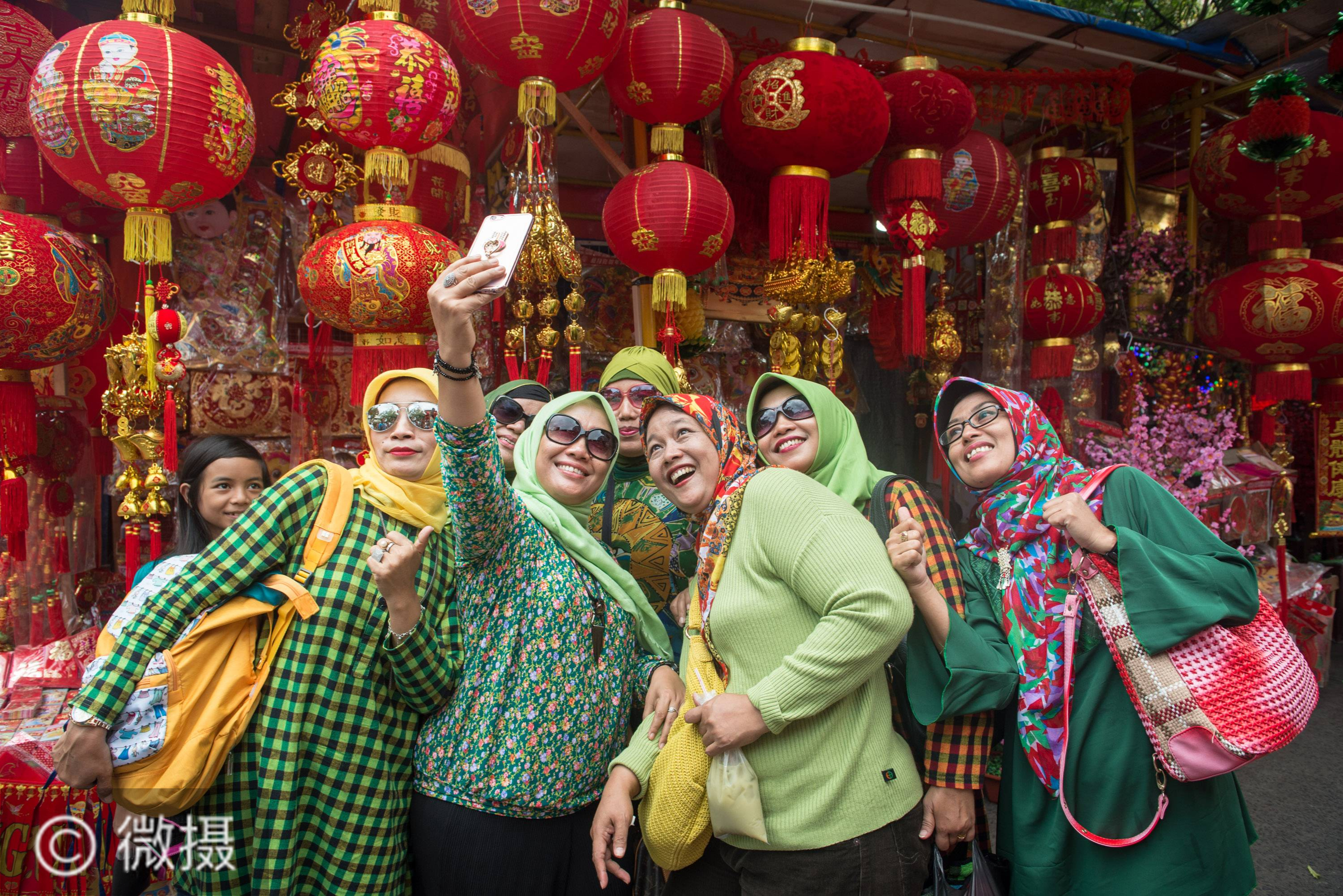 印度尼西亚地处太平洋与印度洋的交汇处,是东南亚最大的经济体、世界第四人口大国。雅加达是印尼首都和第一大城市。在这里,历史留下的痕迹与现代印尼奋斗发展的成就交织融合。 这是2017年1月21日农历春节前夕,当地民众在印度尼西亚雅加达唐人街的传统春节装饰物摊位前合影。新华社记者杜宇摄