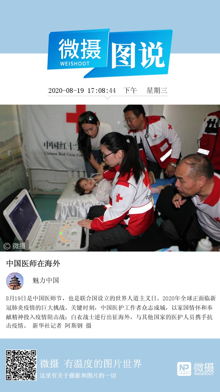 8月19日是中国医师节,也是联合国设立的世界人道主义日。2020年全球正面临新冠肺炎疫情的巨大挑战。关键时刻,中国医护工作者众志成城,以家国情怀和奉献精神投入疫情阻击战;白衣战士逆行出征海外,与其他国家的医护人员携手抗击疫情。 新华社记者 阿斯钢 摄
