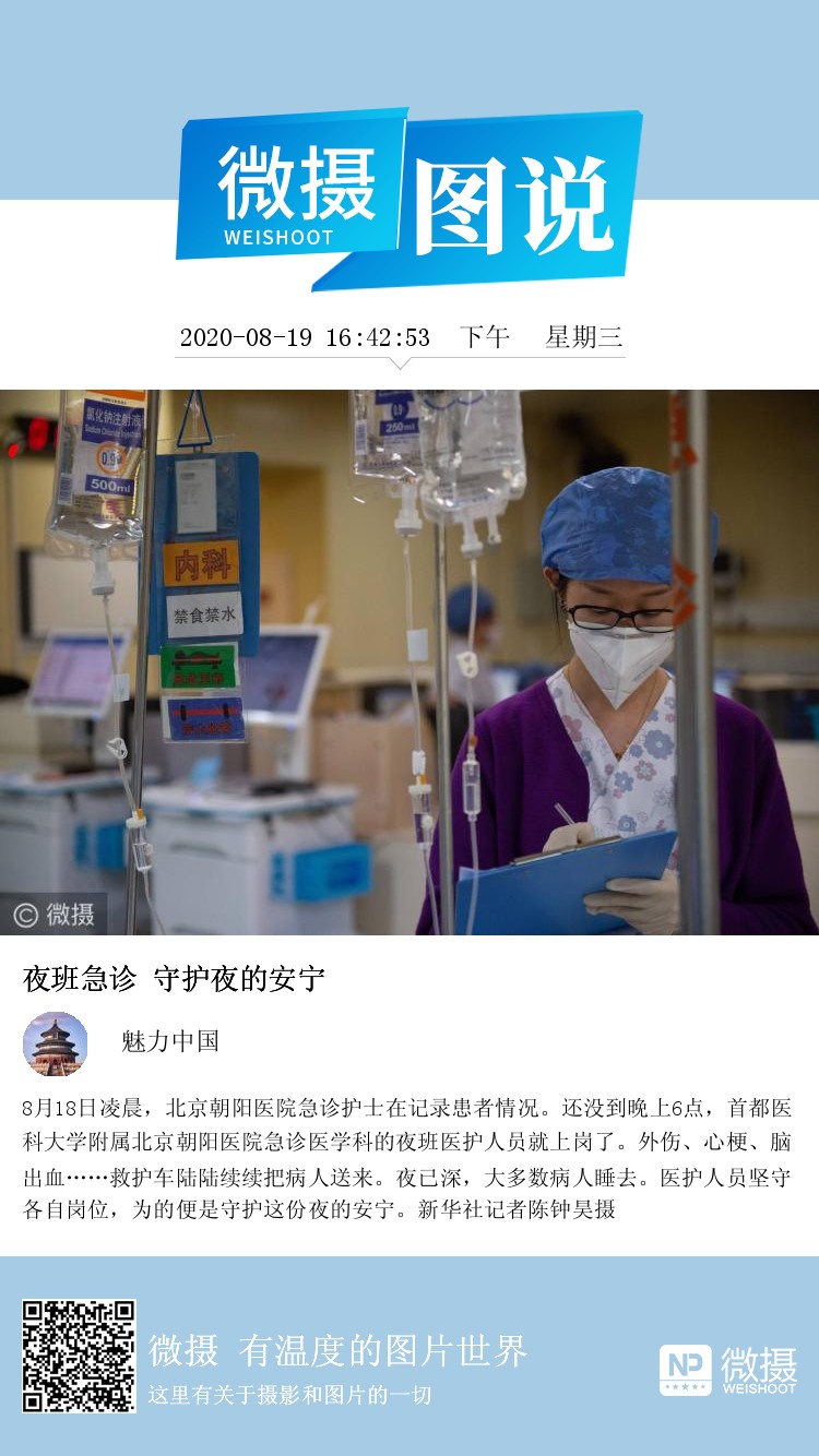 8月18日凌晨,北京朝阳医院急诊护士在记录患者情况。还没到晚上6点,首都医科大学附属北京朝阳医院急诊医学科的夜班医护人员就上岗了。外伤、心梗、脑出血……救护车陆陆续续把病人送来。夜已深,大多数病人睡去。医护人员坚守各自岗位,为的便是守护这份夜的安宁。新华社记者陈钟昊摄