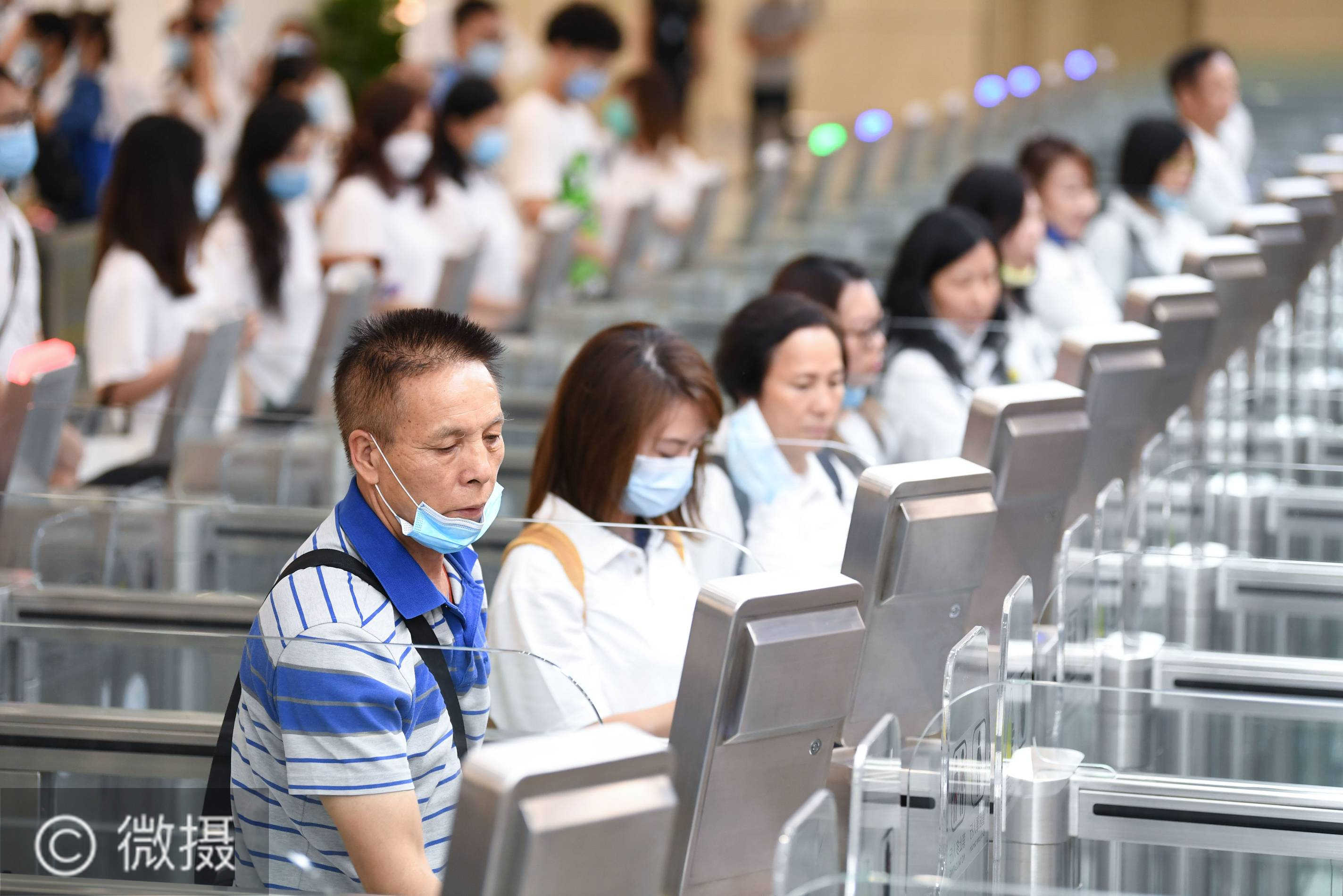 8月18日,在横琴口岸新旅检区域自助查验通道,旅客使用设备办理过关手续。当日,横琴口岸新旅检区域开通仪式举行,标志着粤港澳大湾区一条新的“超级通道”投入使用。作为粤港澳大湾区建设的标杆工程,横琴口岸粤澳日通行能力从75万人次提升到90万人次,大大提升通关效率。新华社记者邓华摄