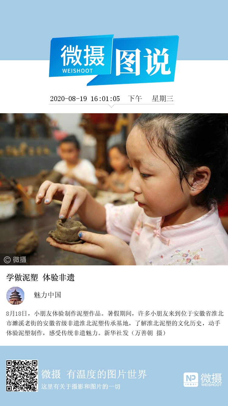 8月18日,小朋友体验制作泥塑作品。暑假期间,许多小朋友来到位于安徽省淮北市濉溪老街的安徽省级非遗淮北泥塑传承基地,了解淮北泥塑的文化历史,动手体验泥塑制作,感受传统非遗魅力。新华社发(万善朝 摄)