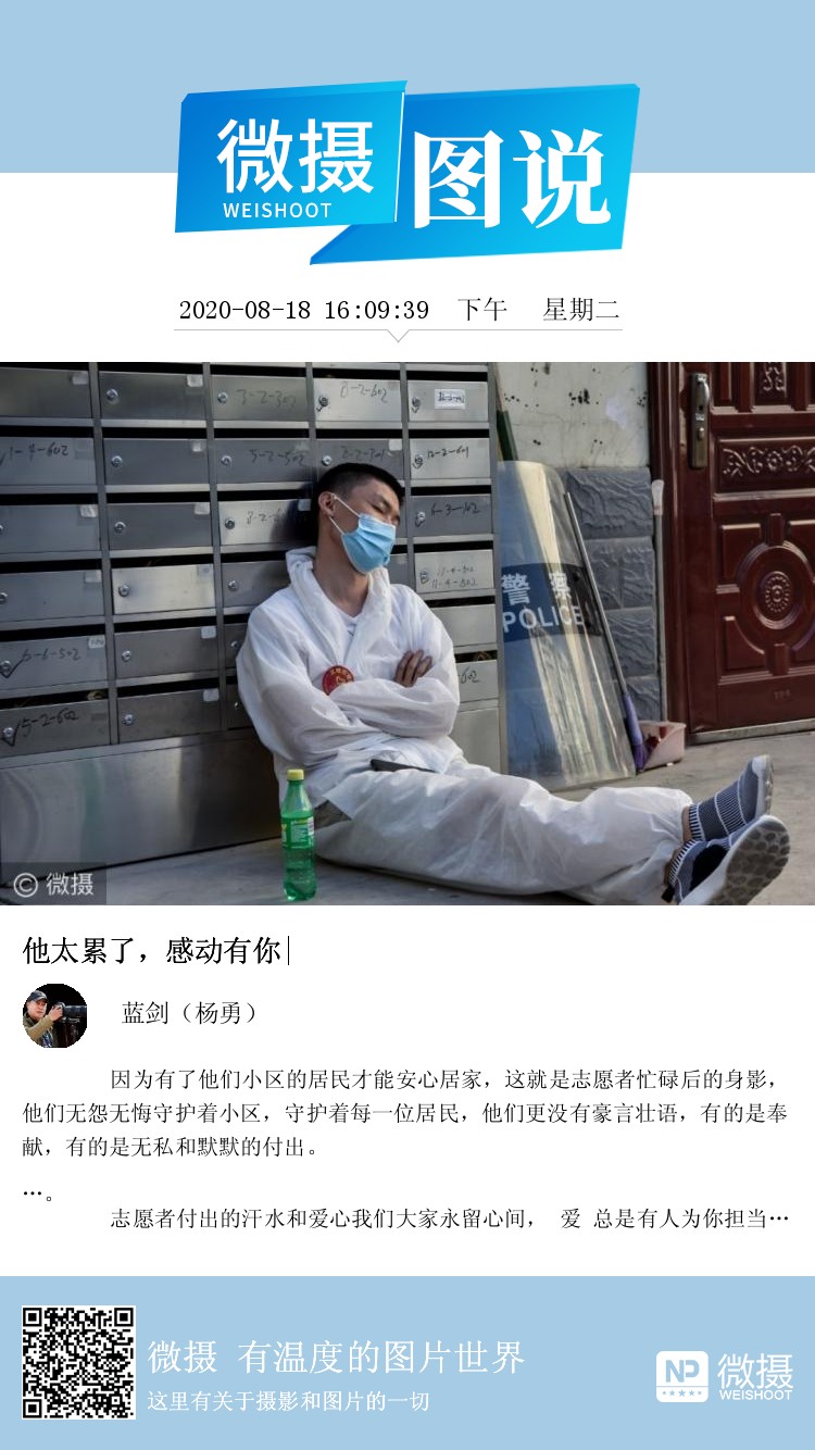 因为有了他们小区的居民才能安心居家,这就是志愿者忙碌后的身影,他们无怨无悔守护着小区,守护着每一位居民,他们更没有豪言壮语,有的是奉献,有的是无私和默默的付出。 志愿者付出的汗水和爱心我们大家永留心间, 爱 总是有人为你担当……。