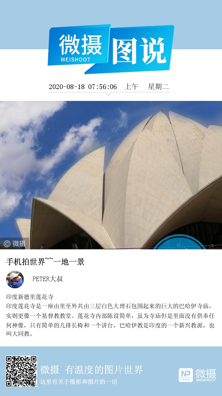 印度新德里莲花寺 印度莲花寺是一座由里至外共由三层白色大理石包围起来的巨大的巴哈伊寺庙,实则更像一个基督教教堂。莲花寺内部陈设简单,虽为寺庙但是里面没有供奉任何神像,只有简单的几排长椅和一个讲台,巴哈伊教是印度的一个新兴教派,也叫大同教。