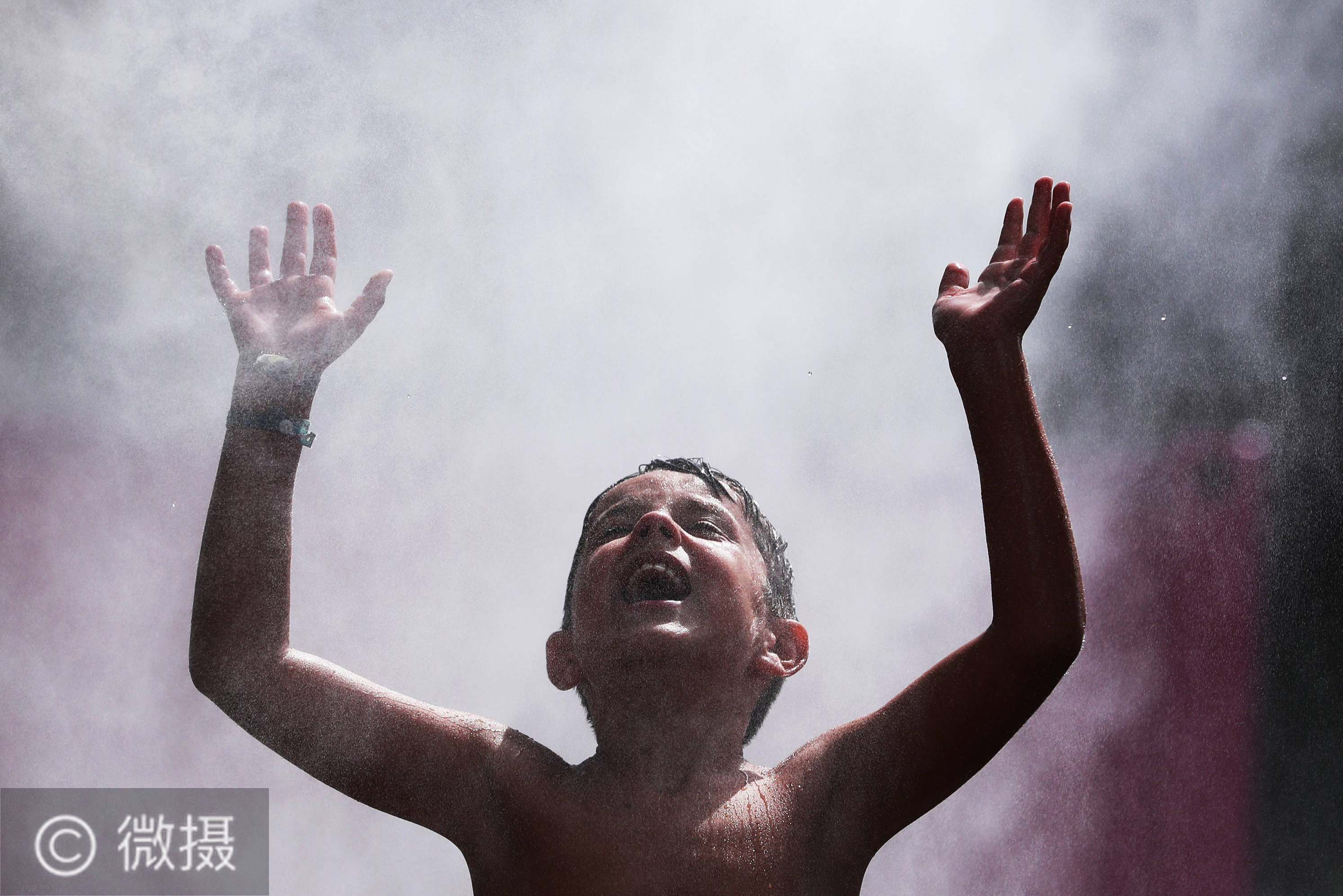 8月10日,一名男孩在法国巴黎塞纳河畔的喷雾装置下消暑纳凉。受新冠疫情反弹影响,法国巴黎沙滩节对部分项目进行了调整。其中,塞纳河边颇受民众欢迎的喷雾消暑装置只预留给11岁以下、无须佩戴口罩的儿童使用。巴黎在部分户外场所强制市民佩戴口罩,以应对新冠疫情反弹。新华社记者高静摄