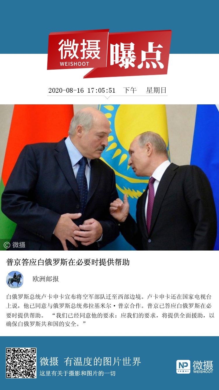 普京答应白俄罗斯在必要时提供帮助