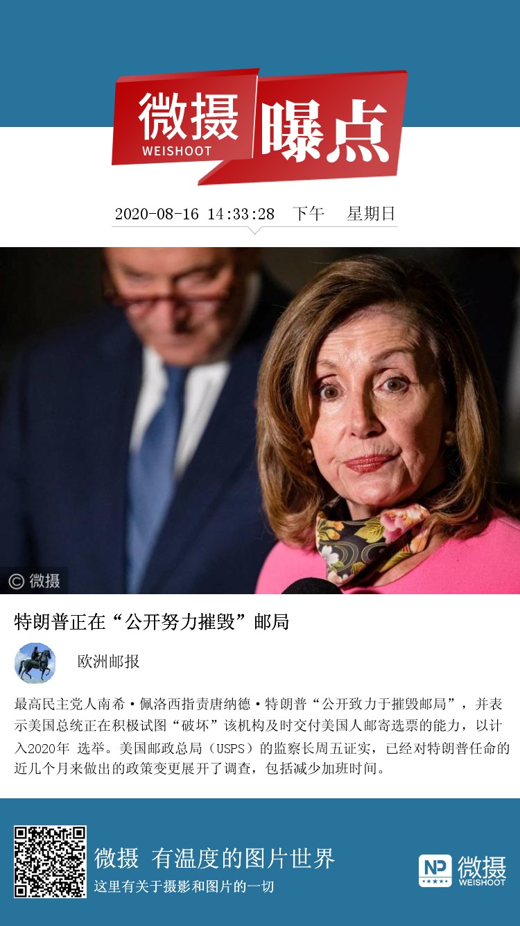 最高民主党人南希·佩洛西指责唐纳德·特朗普“公开致力于摧毁邮局”,并表示美国总统正在积极试图“破坏”该机构及时交付美国人邮寄选票的能力,以计入2020年 选举。美国邮政总局(USPS)的监察长周五证实,已经对特朗普任命的近几个月来做出的政策变更展开了调查,包括减少加班时间。