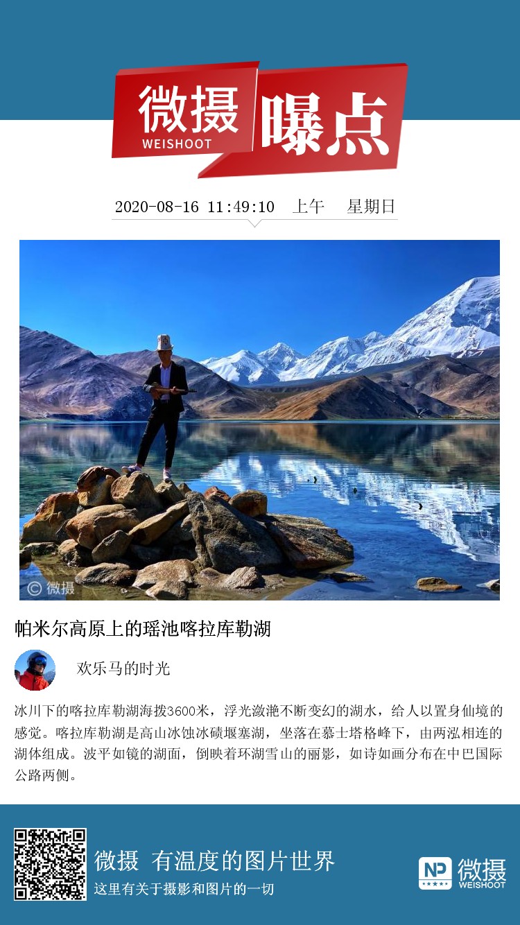 冰川下的喀拉库勒湖海拨3600米,浮光潋滟不断变幻的湖水,给人以置身仙境的感觉。喀拉库勒湖是高山冰蚀冰碛堰塞湖,坐落在慕士塔格峰下,由两泓相连的湖体组成。波平如镜的湖面,倒映着环湖雪山的丽影,如诗如画分布在中巴国际公路两侧。